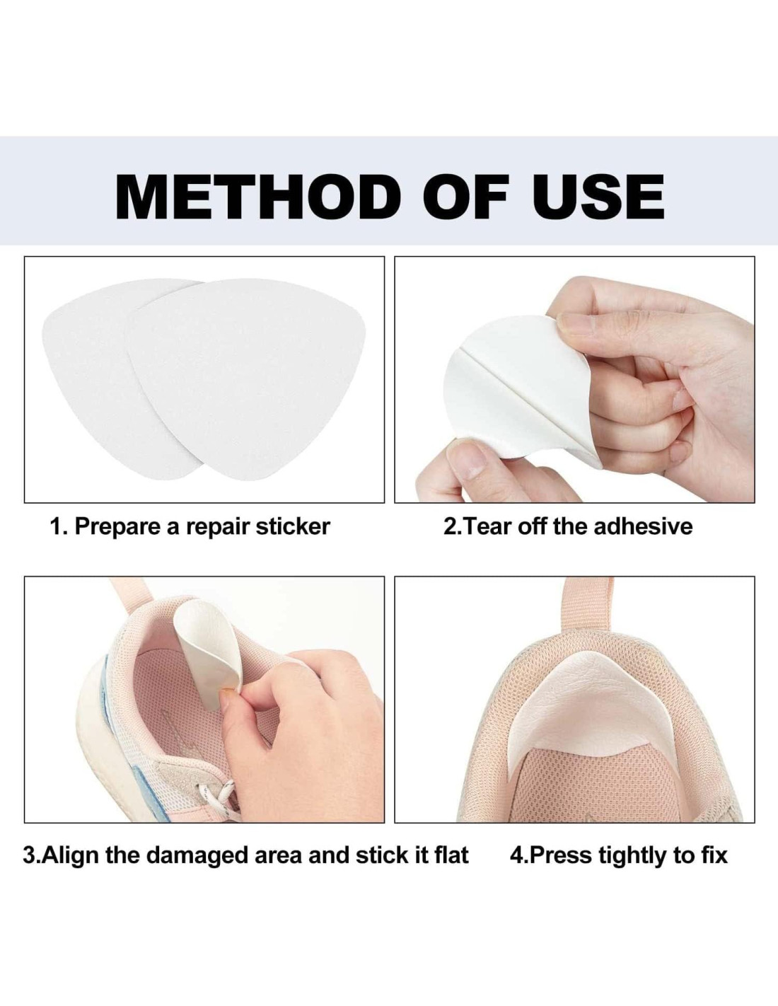 - Fácil de Usar: El parche para reparación de tacones de zapatillas tiene un fuerte autoadhesivo en la parte posterior, solo necesitas despegar el papel de liberación en la parte posterior directamente, pegarlo en el lugar dañado y presionar plano
