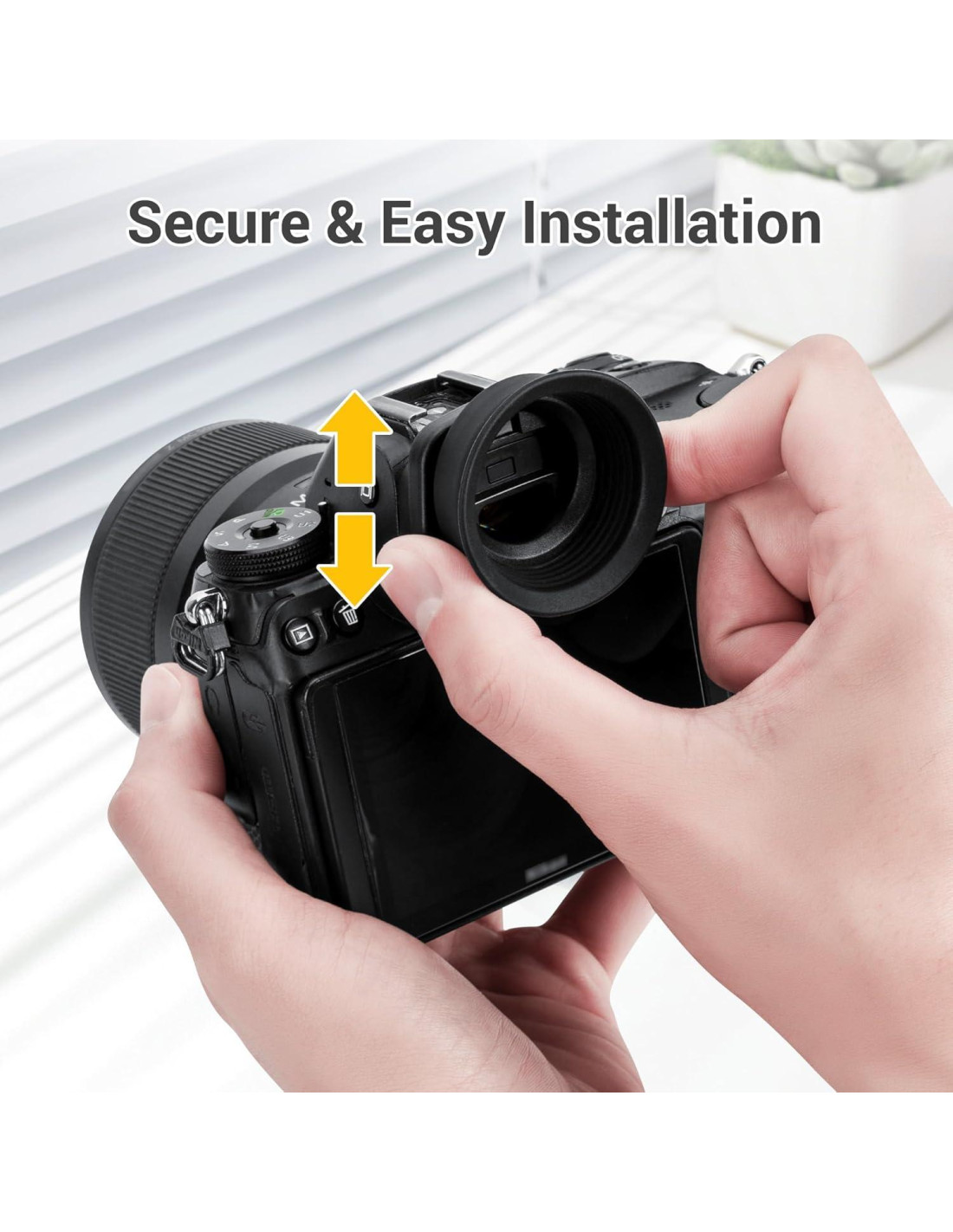 - Deslízala sobre el visor para la instalación, es segura y confiable. Esta copa ocular no interfiere con la detección del sensor ocular de la cámara ni con el uso normal de la pantalla LCD Z5 II Z6 II Z7 II Z 7 Z 6 Z 5. (Nota: Si estás usando la cámara Z6 III, esta copa ocular puede tocar ligeramente la pantalla LCD, pero no afectará el uso normal).