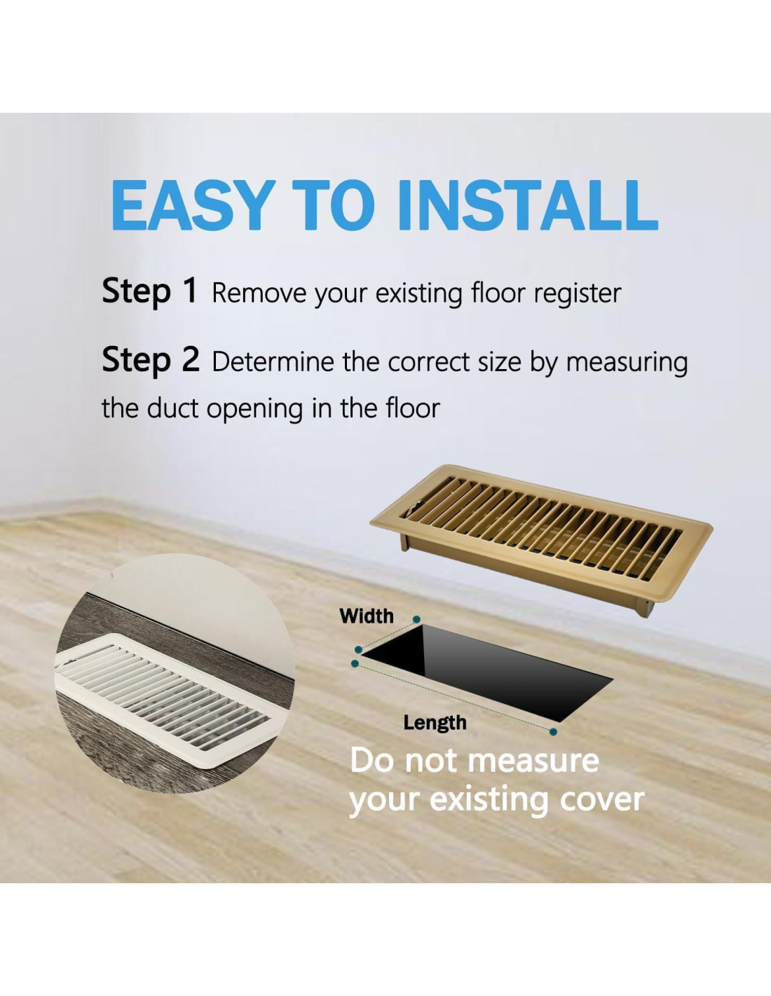 - Fácil Instalación y Ajuste Perfecto: Instalar nuestras ventilaciones de piso es muy sencillo, ¡no se requieren tornillos ni herramientas! Los bordes se ajustan perfectamente contra el piso, eliminando riesgos de tropiezos o doblados. Asegúrese de medir la longitud y el ancho de la abertura de su conducto antes de comprar para garantizar un ajuste perfecto.