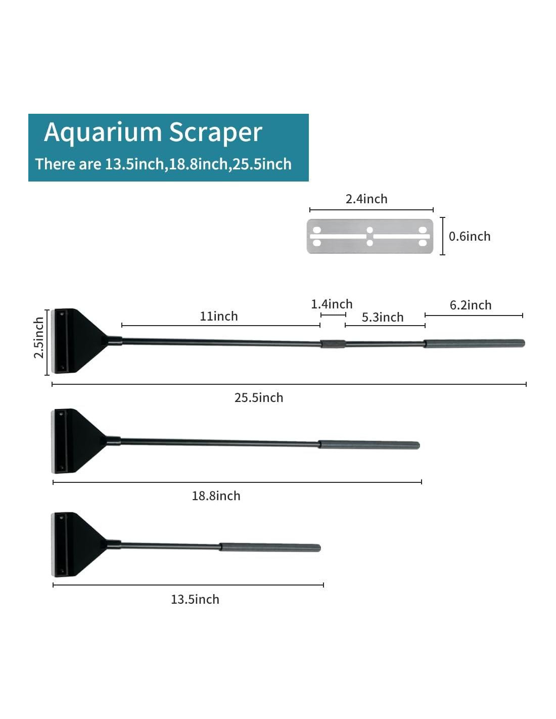 - El paquete incluye: 1 x rascador de acuario, 4 x varillas de extensión, 5 x cuchillas y 1 x llave de tornillo.