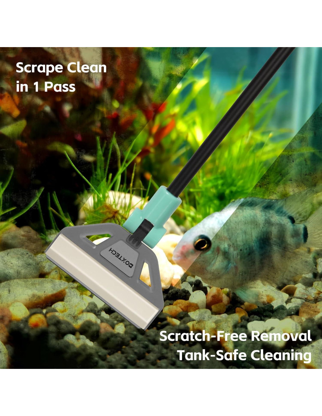 - - Limpieza Segura y Eficiente: Equipado con cuchillas afiladas que eliminan algas sin rayar, este raspador de tanques de peces prioriza la seguridad con una cubierta protectora, permitiéndote limpiar el vidrio de tu acuario sin preocupaciones.
