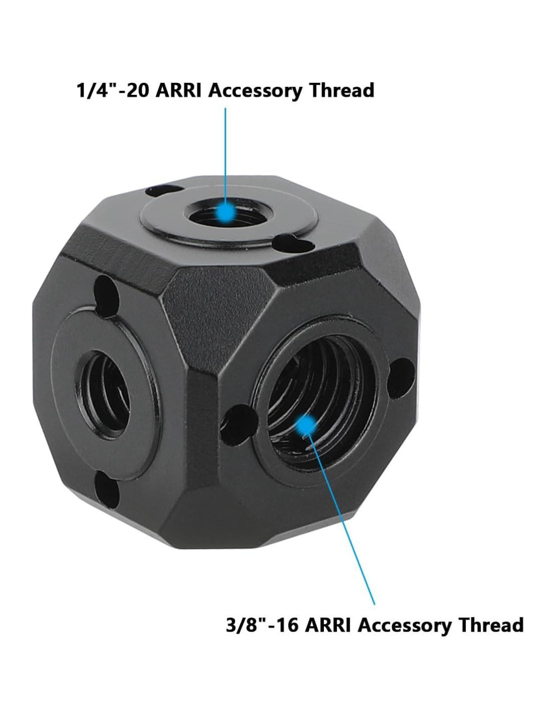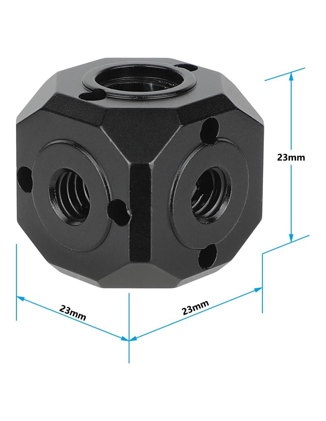 El adaptador de agujero de tornillo de trípode universal Magic Cubic se coloca entre cualquier cámara y la cabeza del trípode en la que está montado, ofreciendo múltiples montajes hembra roscados de 1/4"-20 (6.35 mm) y 3/8"-16 (9.53 mm) para crear configuraciones de cámara personalizadas. Se pueden adjuntar fácilmente brazos articulados para agregar un micrófono, monitor, luz LED y más. Se incluye un tornillo sin cabeza de 1/4"-20 (6.35 mm) y seis tornillos de cabeza M3. Peso neto: 25 g. Paquete incluido: 1 x llave Allen, 6 x tornillo de cabeza M3, 1 x Magic Cubic Mount, 1 x tornillo sin cabeza de 1/4"-20 (6.35 mm).