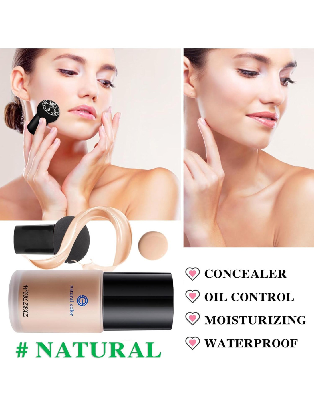 - [Diseño Amigable con la Piel] El corrector de base de cobertura completa utiliza una membrana biónica elástica amigable con la piel, que puede presionar uniformemente una crema CC delicada y ligera, haciendo que la piel se vea más natural y perfecta.