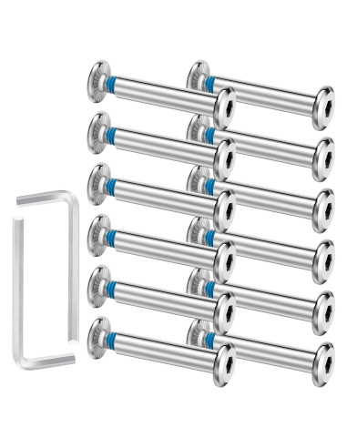 20 Juegos de tornillos de rueda de patín inline con herramienta de instalación de 2 piezas. Características: Herramienta práctica: Te ofrecemos suficientes tornillos de rueda de patín para usar y reemplazar, hay herramientas de instalación para un uso fácil, práctico de usar y que brinda mucha comodidad a tu vida diaria. Pequeño en tamaño: Estos tornillos de rueda de patín inline son pequeños, vienen empaquetados en una caja, fáciles y portátiles para que los lleves y almacenes, sin ocupar mucho espacio. Especificaciones: Material: metal Color: plata Tamaño: Ancho del tornillo hexagonal: aproximadamente 5/32 pulgadas (4 mm), Diámetro del eje: aproximadamente 15/64 pulgadas (6 mm) Tamaño total: aproximadamente 37 x 13 mm (1.5 x 0.5 pulgadas) El paquete incluye: 20 x Tornillos de rueda de patín 2 x Herramientas de instalación