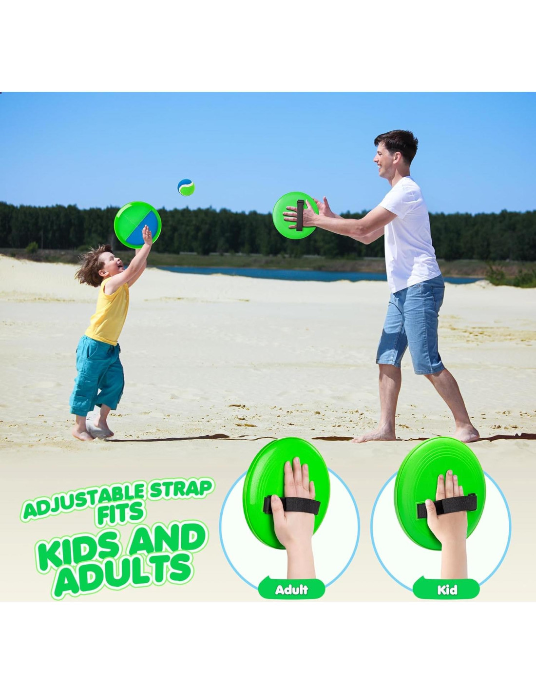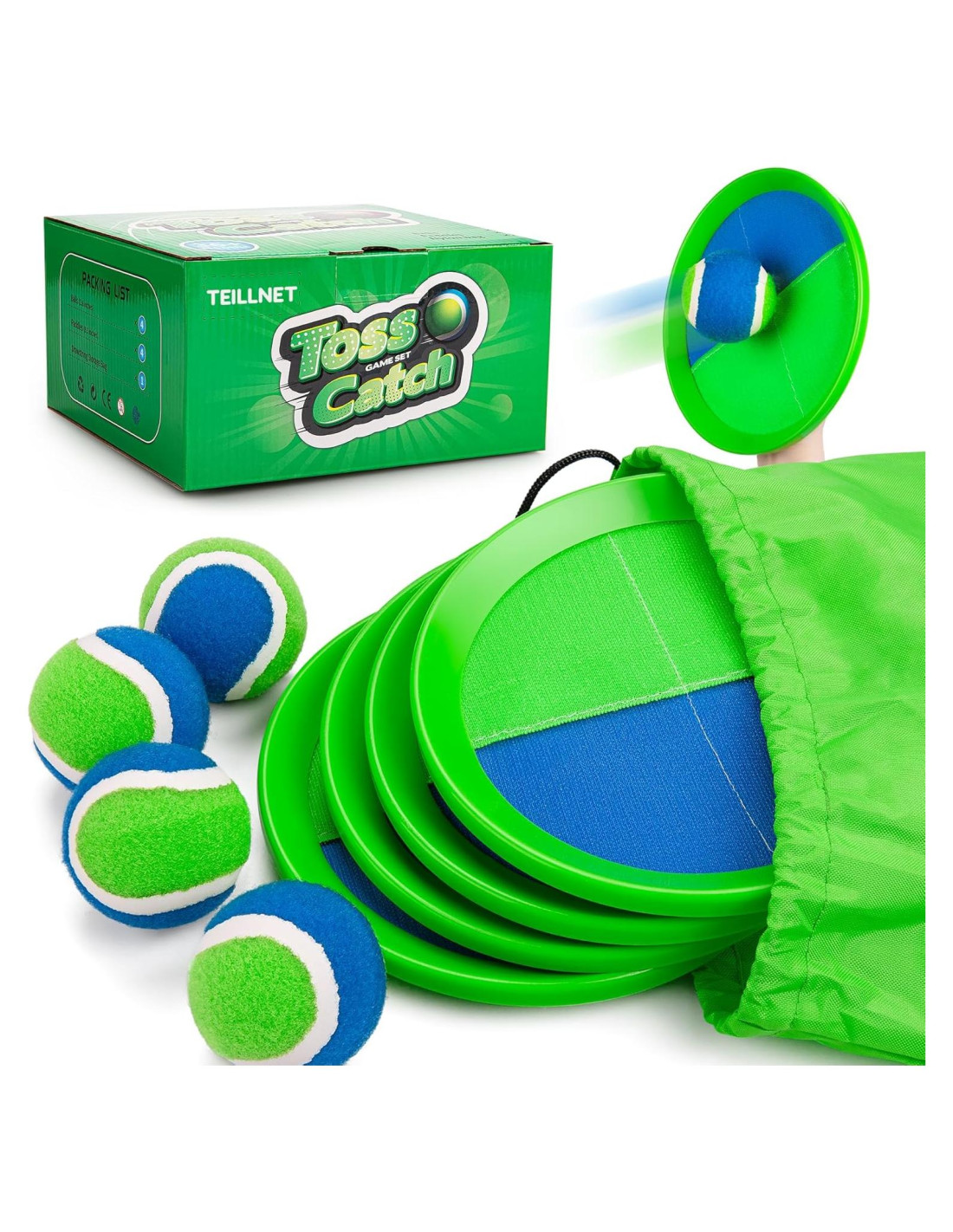 - Diversión al Aire Libre: ¡Un juego de lanzar y atrapar que los niños disfrutarán! Puedes jugar este juego de atrapar y pelota en interiores, en el patio trasero, en el parque, en la playa o incluso en la piscina. Con estos juguetes al aire libre perfectos para niños de 3 años en adelante, puedes divertirte con amigos y familiares durante horas.