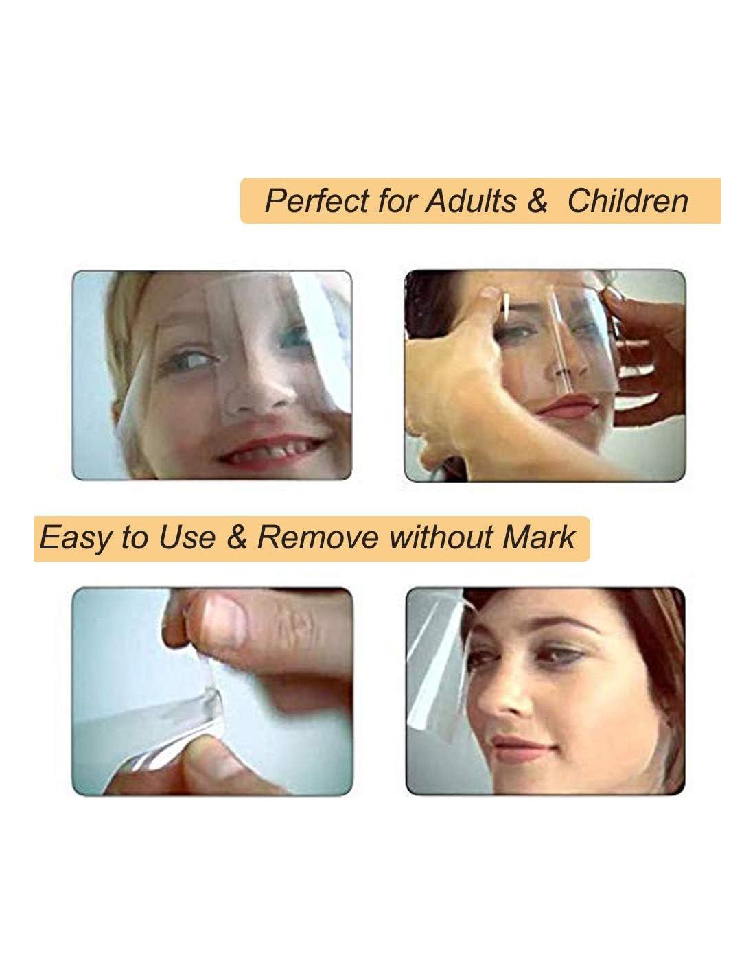 - 50 PCS VISORES LIGEROS: Nuestros Visores están hechos de plástico y tienen una tira adhesiva probada médicamente que es suave para la piel. Es muy transparente y puedes disfrutar viendo videos y jugando juegos de celular durante el corte de cabello.