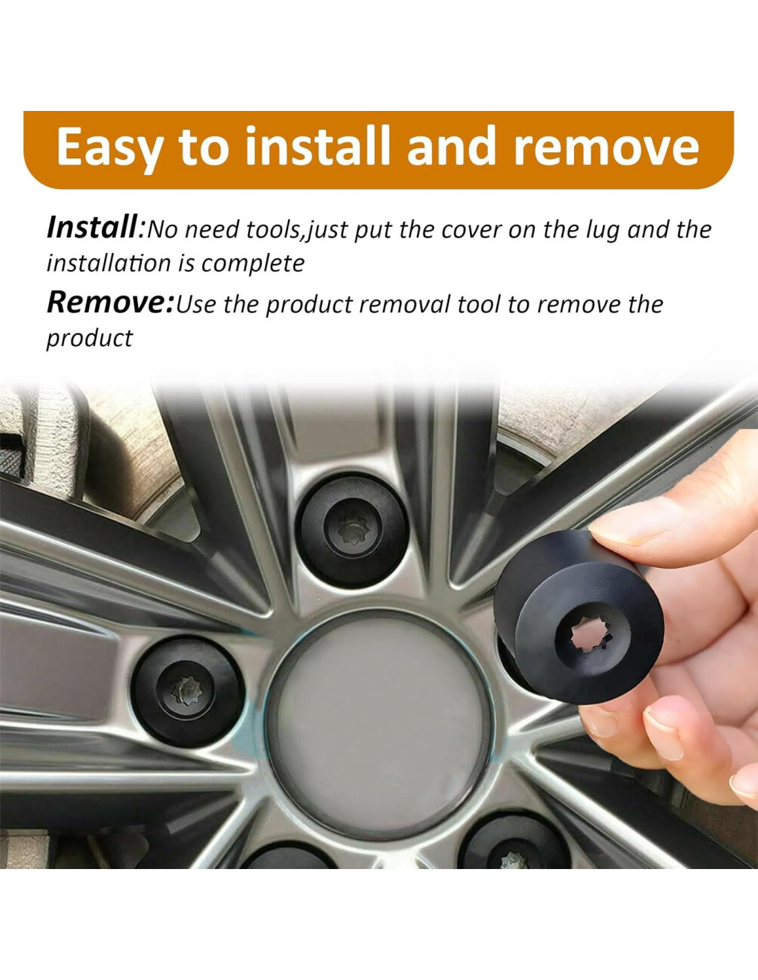 - [Instalación Rápida y Fácil] : Instalar las cubiertas de tuercas toma segundos, solo presiona firmemente la cubierta de la tuerca sobre el tornillo, asegurando que la tapa se ajuste bien a la tuerca y no se caiga ni se afloje. La herramienta de extracción incluida en el paquete te permite reemplazar fácilmente la tapa del tornillo de la llanta.