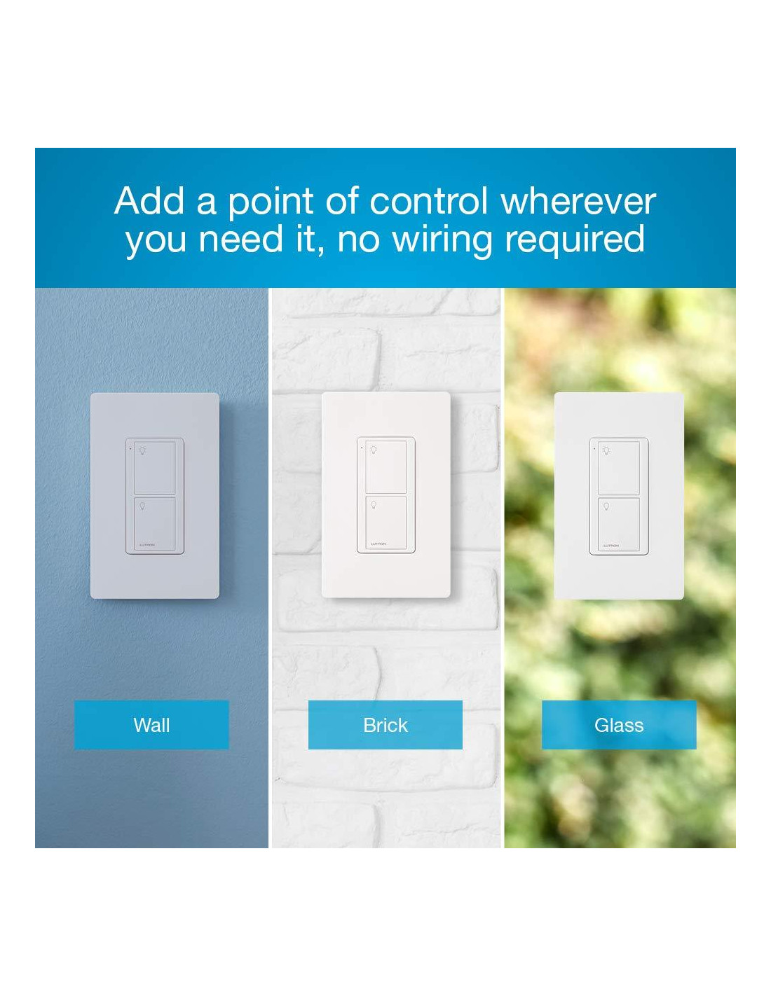 - Funciona como un interruptor donde más lo necesitas; se adapta a una placa de pared estándar (CW 1 WH) y se monta en cualquier superficie (usa PICO-WBX-ADAPT) sin cortar agujeros ni pasar cables