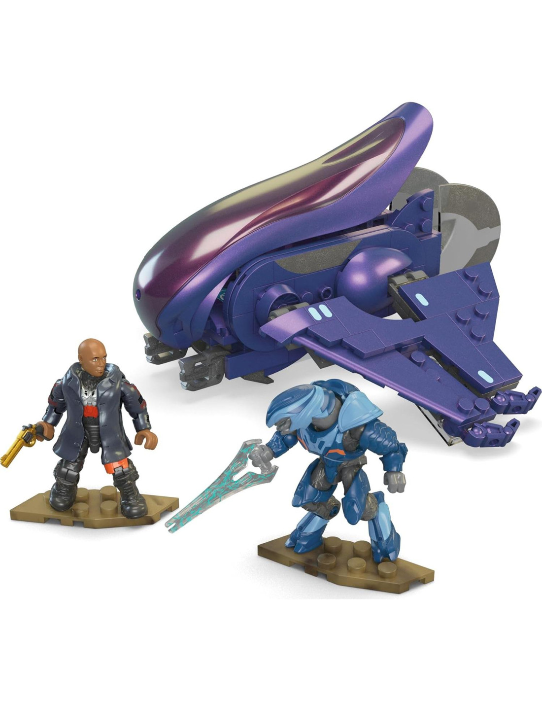 Un vehículo icónico de Halo es reinterpretado para un nuevo medio. La aeronave Banshee construible de Halo: La Serie está modelada a partir de la versión vista en la nueva serie de televisión. Esta Banshee está diseñada auténticamente para capturar el estilo y los detalles únicos del modelo. Presenta una puerta de cabina funcional que se abre y se cierra, con espacio para las 2 figuras incluidas, Soren-006 y un Elite Minor.
