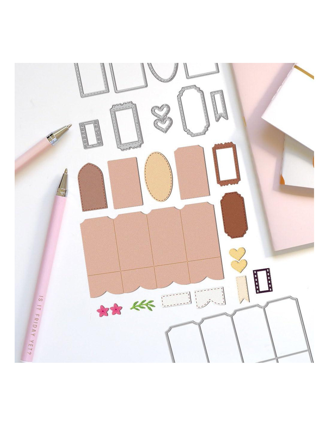 - Amplias Aplicaciones: Los troqueles son adecuados para álbumes de fotos, scrapbooks, tarjetas de papel y otros tipos de tarjetas. Ampliamente utilizados para hacer decoraciones de pasteles, scrapbooking decorativo, tarjetas de invitación, álbumes de fotos, sobres, etc., añadiendo toques únicos a tus proyectos de manualidades.