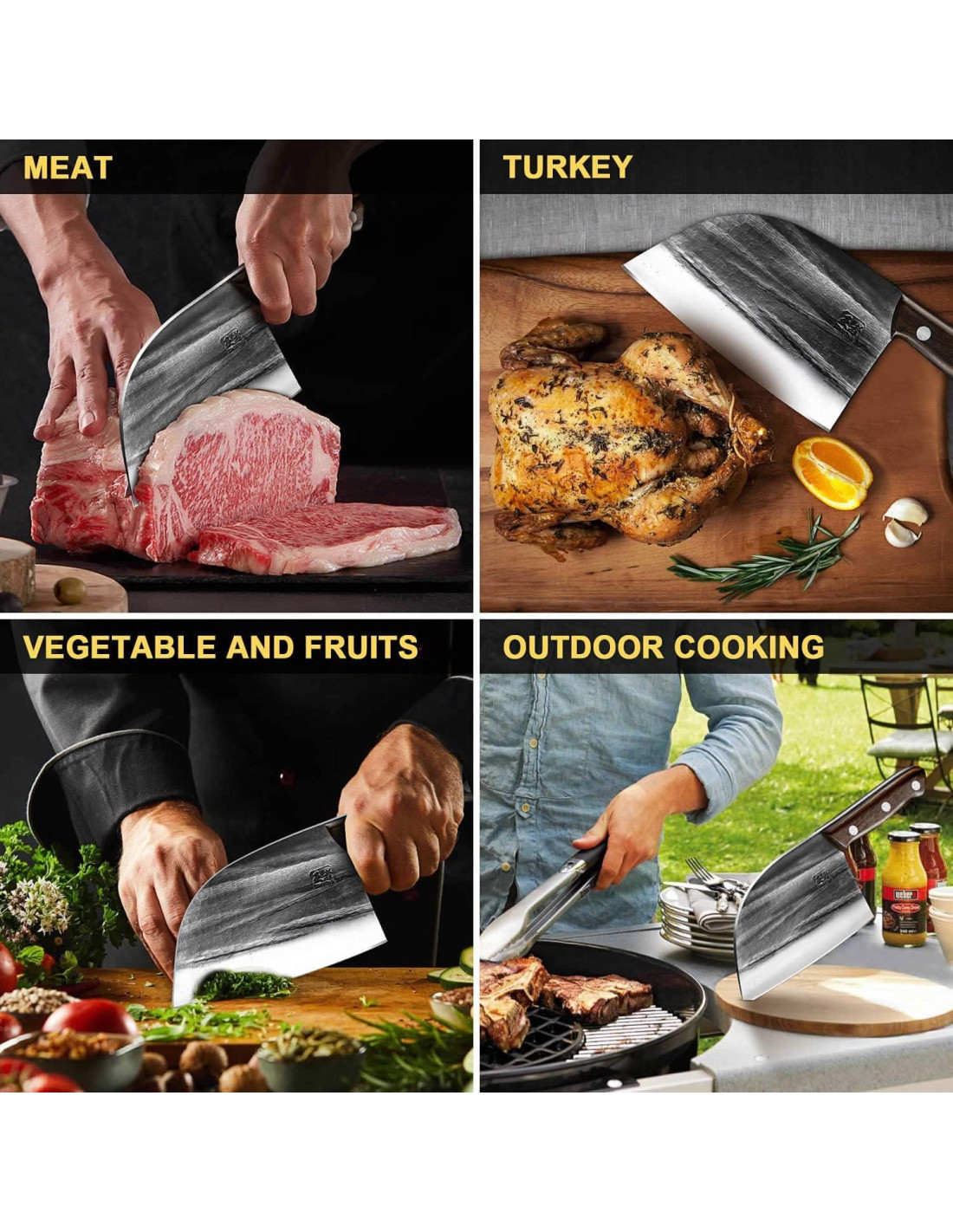 - [Acero de Carbono de Alta Calidad] Los cuchillos ENOKING están fabricados con acero de carbono de alta calidad, ofreciendo una dureza excepcional, resistencia al desgaste y longevidad. Cada hoja es pulida a mano para lograr un rendimiento de corte extraordinario, asegurando cortes, picados y troceados suaves con facilidad. La textura martillada en la hoja no solo añade un toque único y elegante, sino que también mejora sus propiedades antiadherentes. Si bien se requiere un cuidado adecuado para prevenir la corrosión, el mantenimiento regular mantendrá estos cuchillos forjados afilados durante años.