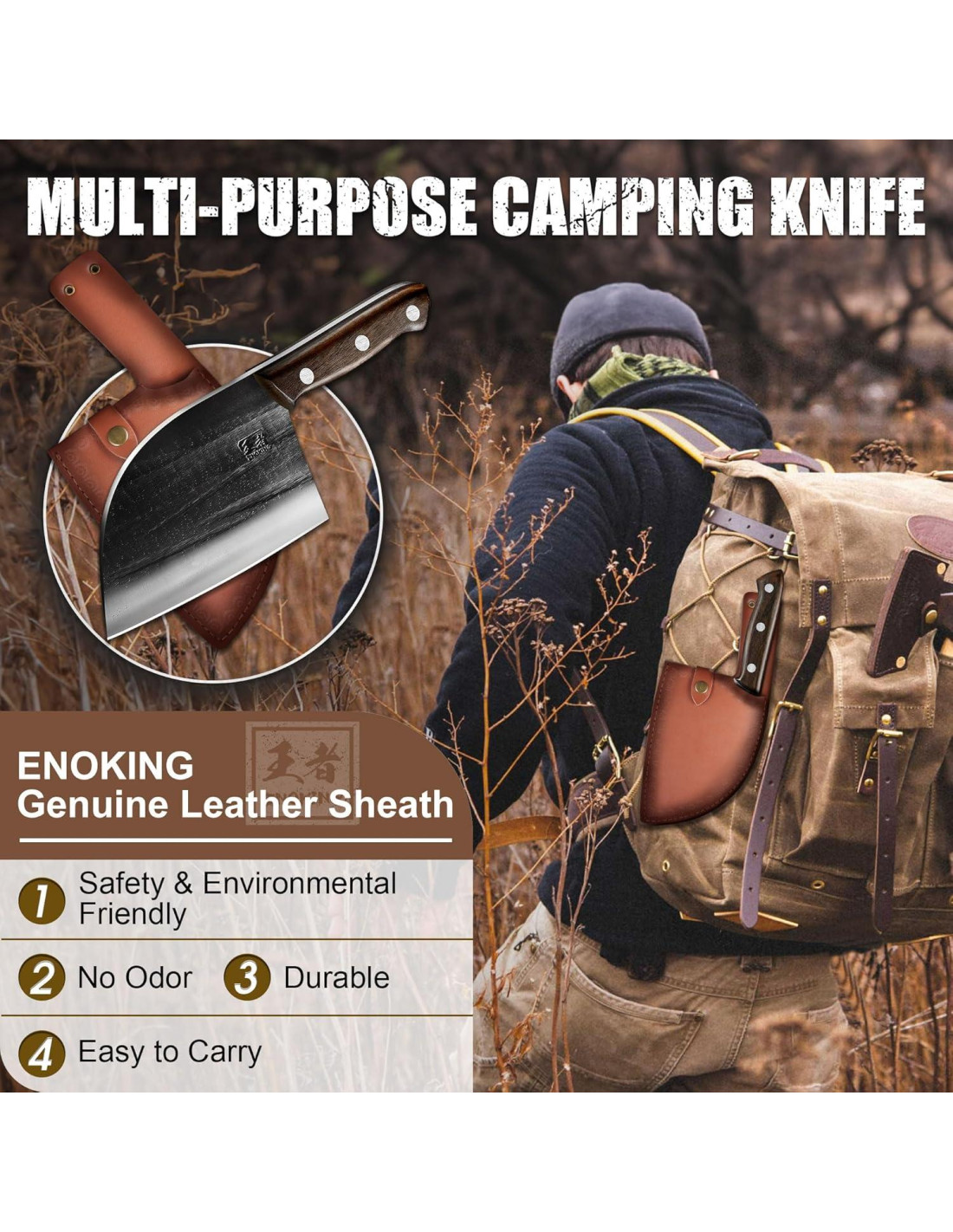 - [Marca ENOKING] Establecida con una pasión por la calidad y la innovación, los cuchillos ENOKING están diseñados para proporcionar una experiencia de corte excepcional a través de su diseño ergonómico y basado en palancas. Nuestro compromiso con la artesanía resulta en cuchillos que son afilados, equilibrados y altamente prácticos. Ya sea para aventuras al aire libre como acampar o tareas diarias en la cocina, los cuchillos ENOKING son el set de cuchillos de chef portátil perfecto, ofreciendo un rendimiento excepcional y un manejo cómodo.