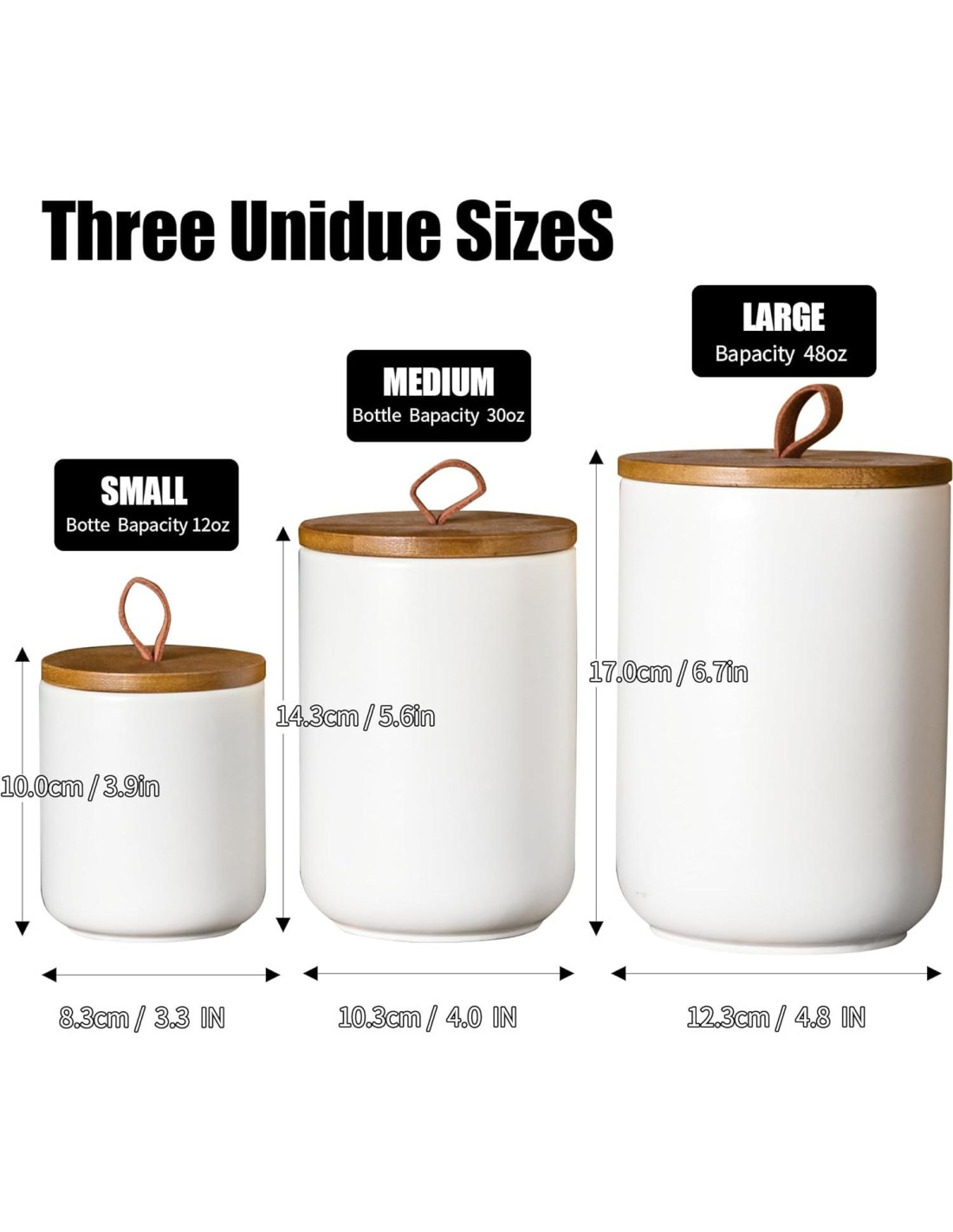 - Material de Alta Calidad para Durabilidad - Hechos de cerámica de primera calidad, estos tarros ofrecen una durabilidad superior en comparación con opciones de plástico o vidrio. Son resistentes a grietas y astillas, asegurando un rendimiento duradero. Las tapas de bambú vienen con sellos de silicona que mejoran la hermeticidad, preservando efectivamente la frescura de tus artículos almacenados y manteniendo la humedad fuera.