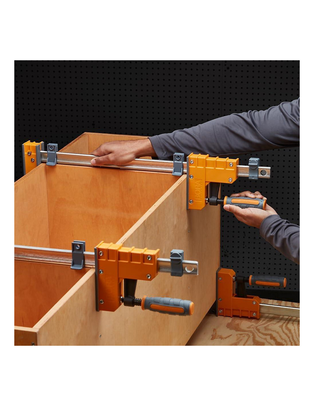 Bora sabe lo importante que es sujetar rígidamente sus muebles y otros proyectos de carpintería. La estabilidad sólida significa un trabajo más preciso. Nuestra abrazadera de mandíbula paralela es la abrazadera de carpintería que tanto los entusiastas como los profesionales eligen. Con la cantidad perfecta de presión 1, 100 lbs (500 kg), una garganta de 3 " (89 mm) con una mandíbula acolchada, y tamaños que varían de 12" a 50", se convierte en una herramienta extremadamente versátil para sus necesidades de sujeción. Agregue los pequeños extras que hacen que todos los productos Bora se destaquen - en este caso, una mandíbula inferior de bloqueo pasivo y un mango grande y fácil de agarrar. Consiga uno (o varios) para su taller hoy.
