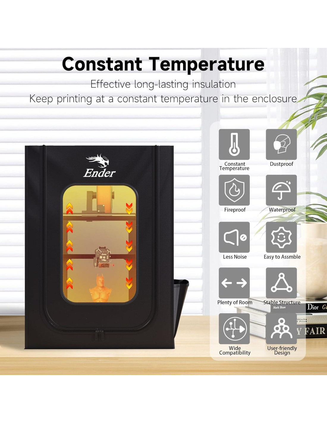 - [Temperatura Constante] - Esta cubierta de impresora 3D mantiene un ambiente de impresión 3D a temperatura constante, reduciendo los efectos adversos del clima de baja temperatura en el modelo impreso. Ayuda con la adhesión a la cama a altas temperaturas, mejorando la estabilidad de impresión. Reduce efectivamente la deformación de las impresiones, la desigualdad y otros problemas.