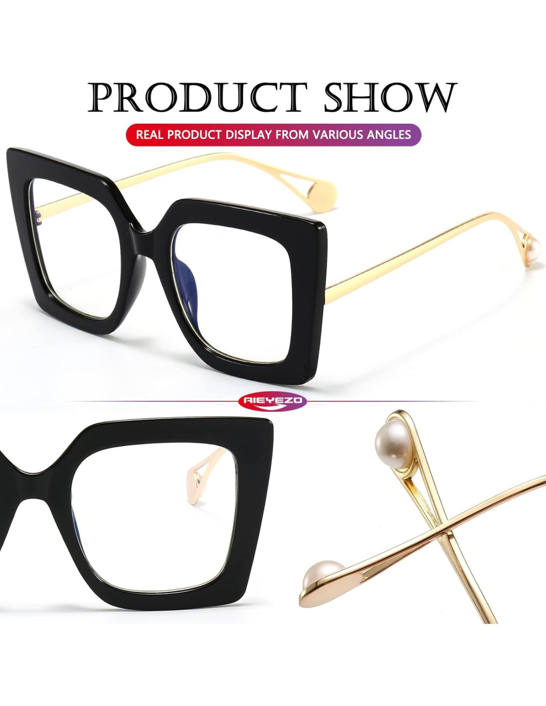 - DISEÑO DE MARCA DE MODA - Montura sobredimensionada, brazo de metal elegante con perla, personaliza tu estilo de una variedad de colores de montura que incluyen flor, azul y leopardo. Crea looks emocionantes y únicos, brinda a estas gafas la máxima comodidad junto con una moda prístina que hará que tu estilo sea atemporal, el diseño de la montura es perfecto para tu rostro.