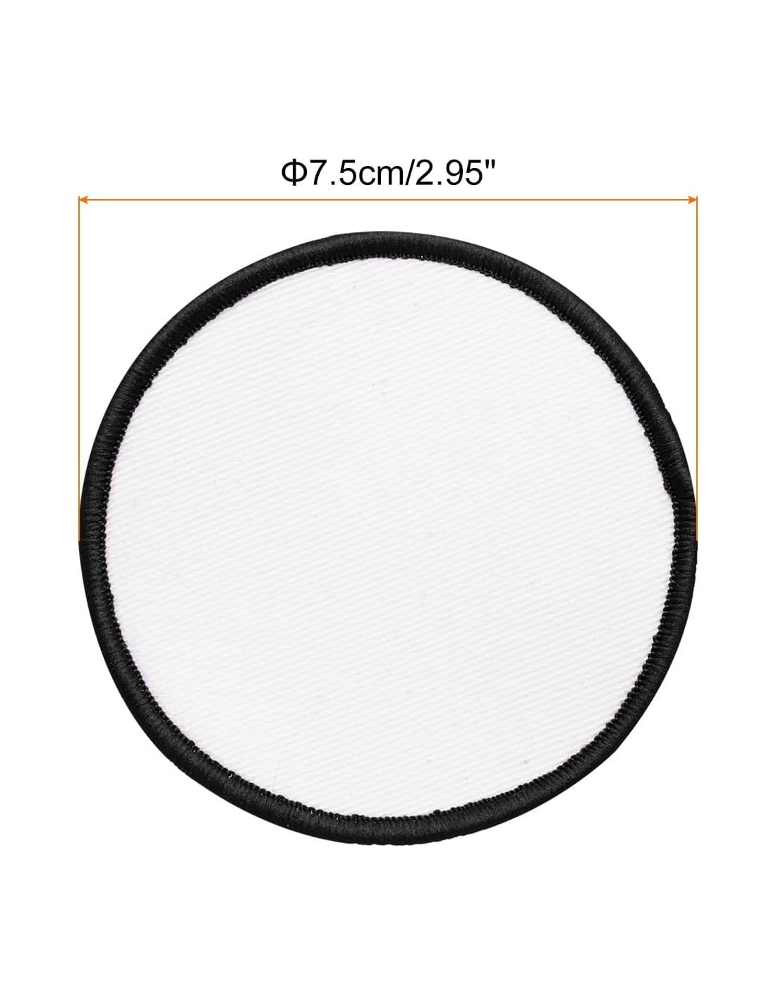 - Tamaño de los Parches de Sublimación Pequeño Círculo: 7.5cm (2.95 Pulgadas) (Diámetro); Forma: Redondo; Color: Blanco con Borde Negro; Material: Tela; En el paquete: 15pcs x Parches en blanco para sombreros