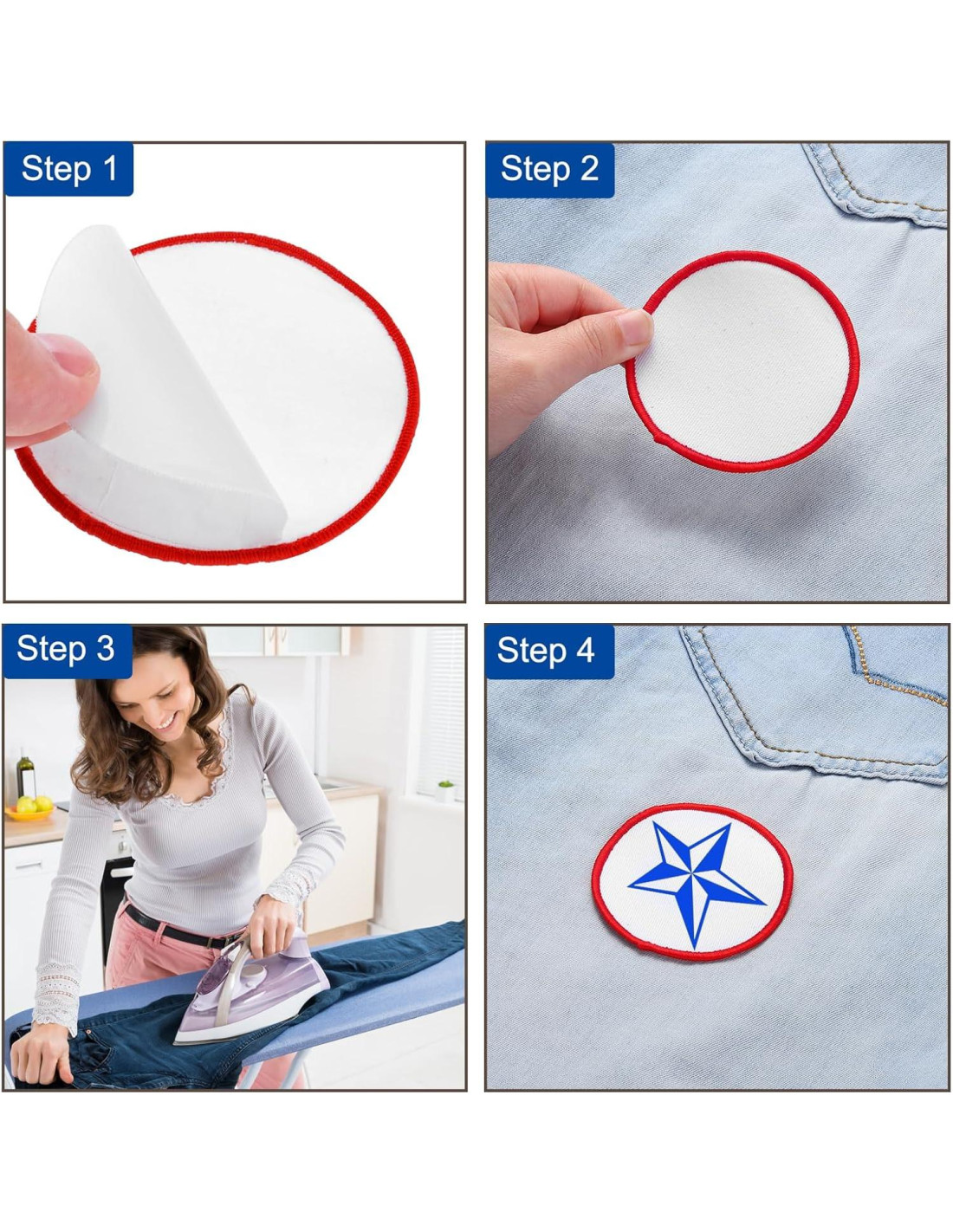 - Imprime tu foto o texto favorito en la superficie del parche, luego colócalo donde desees y cúbrelo con un paño. Precalienta tu plancha y plancha el parche durante aproximadamente 30-60 segundos, se pegará rápidamente debido a su pegamento de alta temperatura en la parte posterior. Plancha nuevamente en la superficie durante 10-20 segundos para fijarlo.