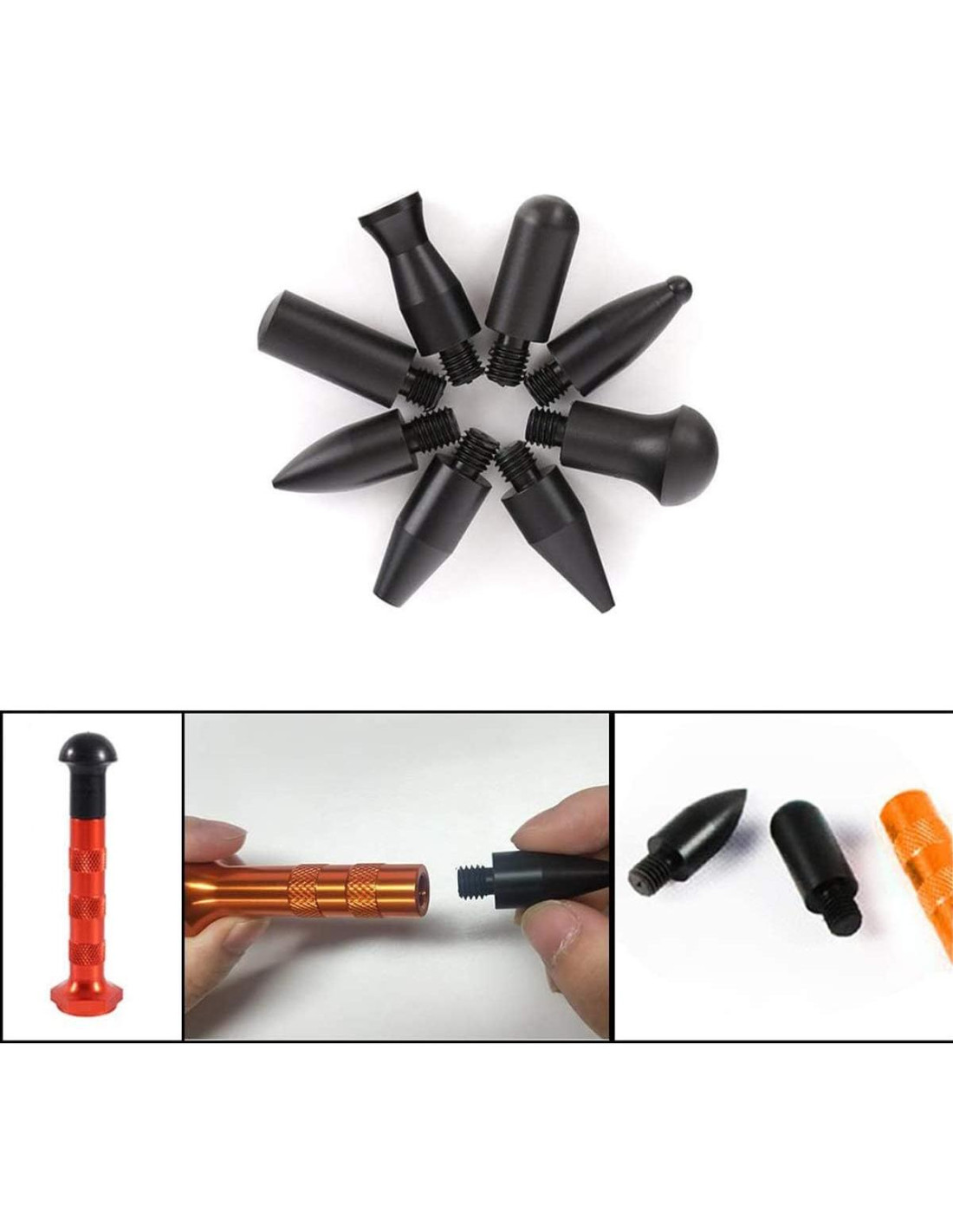Hay muchos tipos de cabezas en el set de martillos de goma. Si eres un principiante, te recomendamos usar una cabeza redonda, y no dañará fácilmente la pintura original.