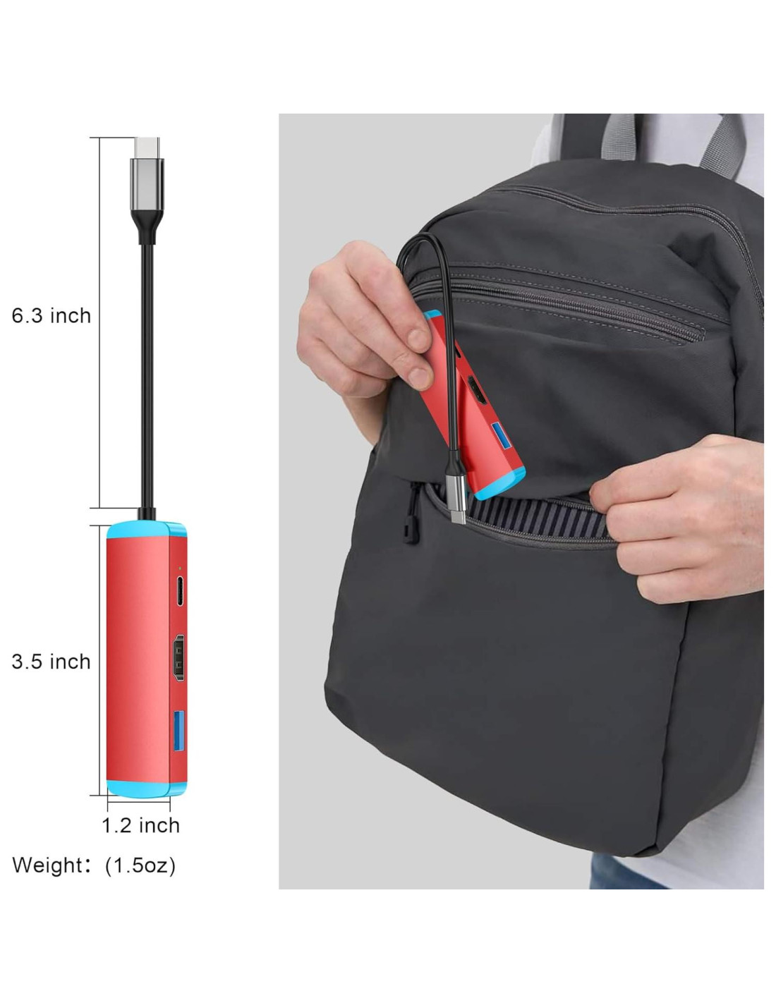 - [Fácil de Llevar] - El adaptador USB C a HDMI de RuntoGOL es más portátil y ligero que el dock oficial de switch. Solo 45g (1.5 onzas) y tamaño del paquete 12 cm * 5.8 cm * 2 cm, lo suficientemente pequeño como para caber en tu bolsillo y fácil de llevar.