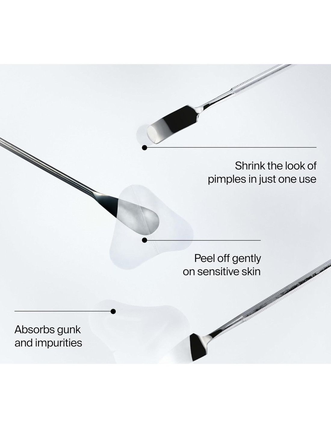 - Los parches hidrocoloides para acné absorben fluidos e impurezas, volviéndose blancos para mostrar que están funcionando, mientras protegen las imperfecciones de ser tocadas; ayudan a reducir visiblemente el tamaño de los granitos maduros durante la noche para una piel con apariencia más clara