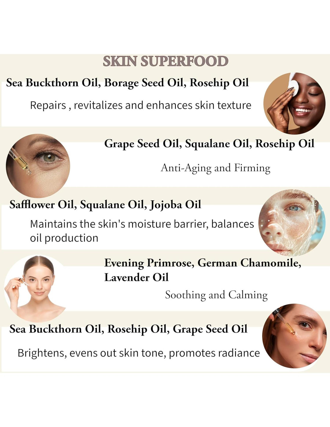 - PERFECTO PARA TODOS LOS TIPOS DE PIEL - Ya sea que tengas piel seca, sensible o mixta, este aceite facial proporciona hidratación profunda y beneficios antienvejecimiento para apoyar una piel saludable y nutrida.