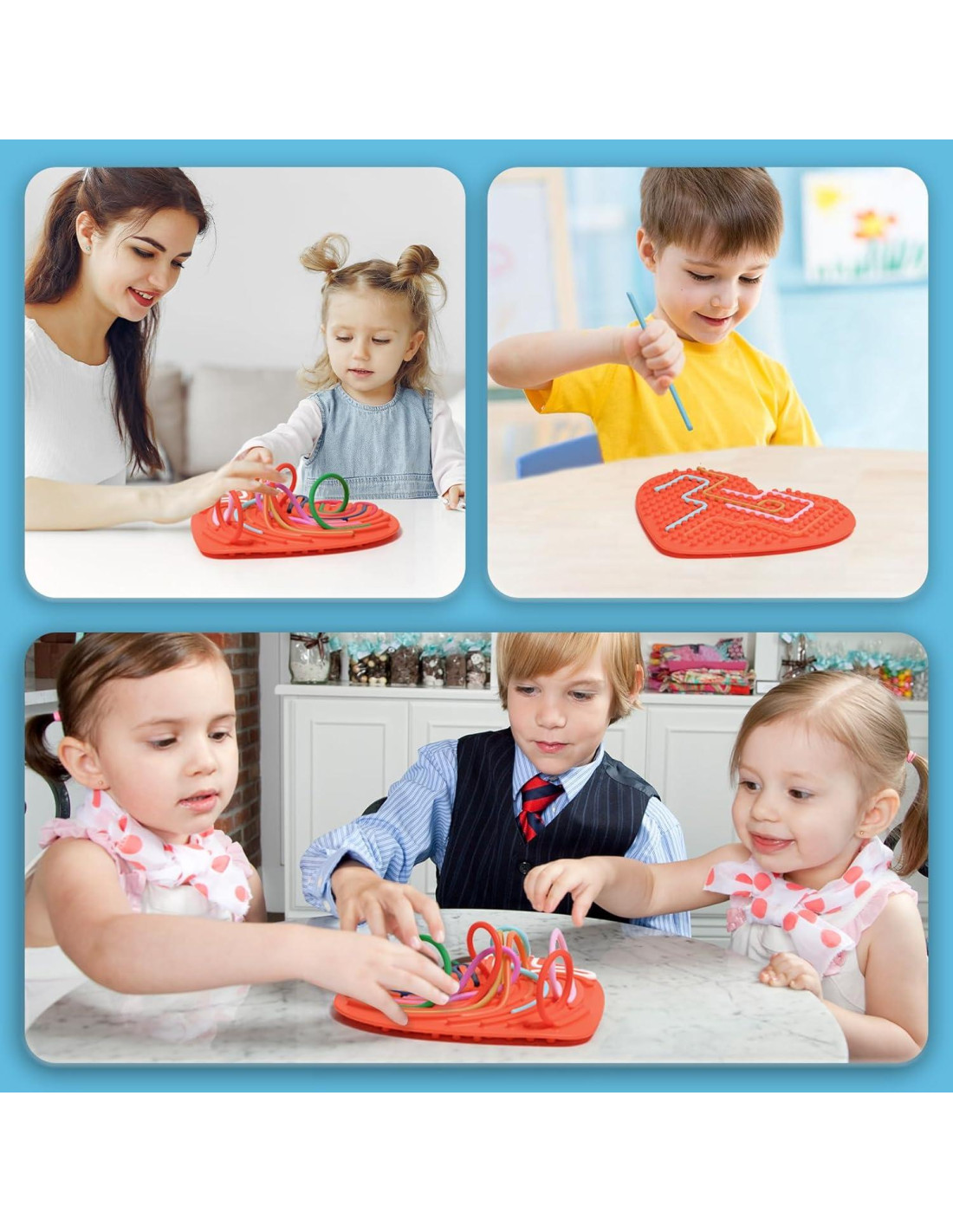 - Portátil y Divertido: Ligero y fácil de transportar, este tablero de actividad sensorial es perfecto para viajar o para momentos de juego tranquilo en casa. Hecho de silicona de alta calidad y no tóxica con certificación CPC, incluye un tablero de silicona y 10 cuerdas coloridas. El diseño del tablero permite jugar en cualquier lugar y en cualquier momento, sin necesidad de una superficie plana.