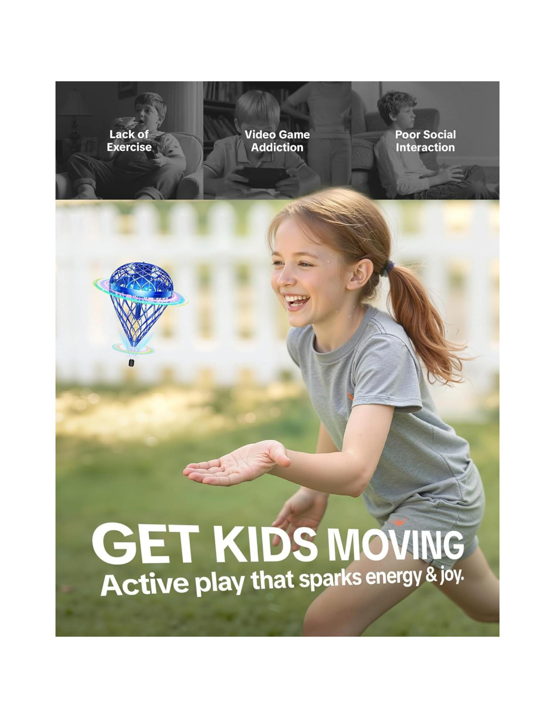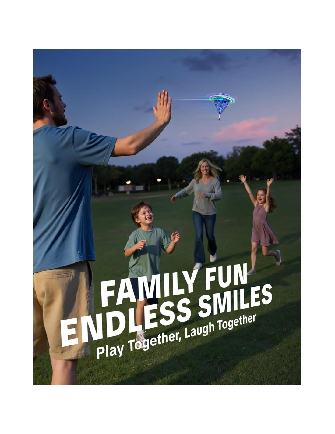 - [Recarga USB-C y Brillo LED] La Esfera Voladora cuenta con una batería incorporada que proporciona hasta 15 minutos de juego por carga y se recarga completamente en aproximadamente 30 minutos. Su brillo LED ilumina cada lanzamiento y captura, manteniendo la diversión tanto en interiores como en exteriores.