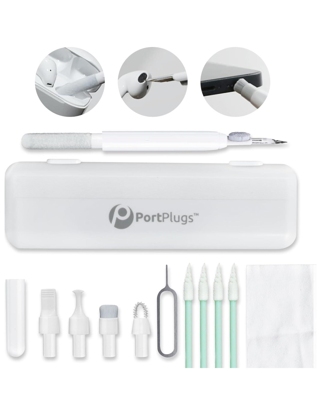 - COMPROMISO DE CALIDAD PORTPLUGS: Cada kit de limpieza para iPhone refleja el enfoque de PortPlugs en el cuidado práctico de dispositivos desde 2014. Nuestros limpiadores de AirPod y herramientas para puertos ayudan a mantener los extremos de carga y los altavoces de malla despejados. Cada kit de limpieza para iPhone 17 está respaldado con accesorios organizados para un uso simple y confiable.