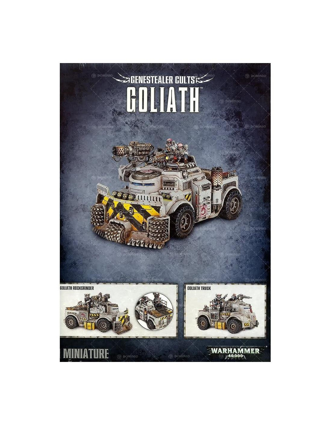 Construido para soportar las presiones y desafíos de la minería subterránea, el Goliath Rockgrinder es una pieza devastadora de equipo cuando se convierte en agresión. Avanzando hacia las filas masivas del enemigo, la artillería montada en servos busca y destruye objetivos prioritarios, el Rockgrinder avanza sin parar, su taladro de sierra desgarrando cualquier cosa lo suficientemente imprudente como para estar en su camino. El cultista de cuarta generación que se encuentra en la parte superior del vehículo utiliza eficientemente su equipo industrial como un arma de guerra - láseres de minería pesados, cañones sísmicos e incineradores de limpieza, aunque diseñados para la minería y la recolección de recursos, son perfectamente adecuados para la aniquilación. Este kit de plástico de múltiples partes contiene los componentes necesarios para ensamblar un Goliath Rockgrinder, plataforma de armas blindada de los Cultos Genestealer. Viene con varias opciones de armas - ametralladora pesada, láser de minería, hoja de taladro, incinerador de limpieza y cañón sísmico - y presenta una tonelada de oportunidades de personalización - los tripulantes tienen sus propias opciones, y el Rockgrinder puede ser modelado bajo en sus ruedas debido al peso de la artillería que lleva. Este kit también puede ser ensamblado como un Camión Goliath.