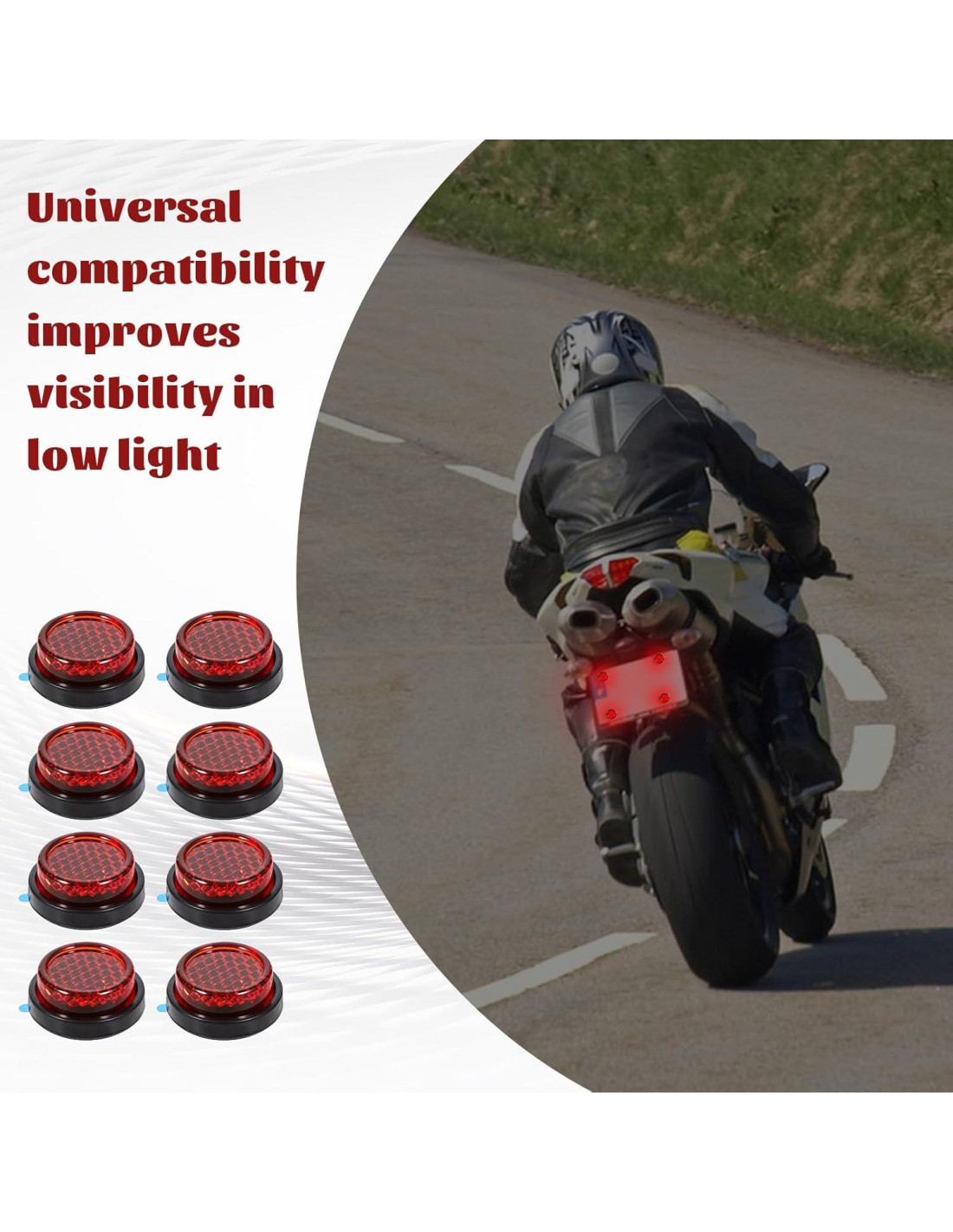 - Estos reflectores para motocicleta son adecuados para una variedad de vehículos, incluyendo motocicletas, bicicletas, automóviles, camiones y remolques, así como aplicaciones no vehiculares como puertas y postes de cercas. Estos reflectores mejoran la seguridad en una variedad de aplicaciones.