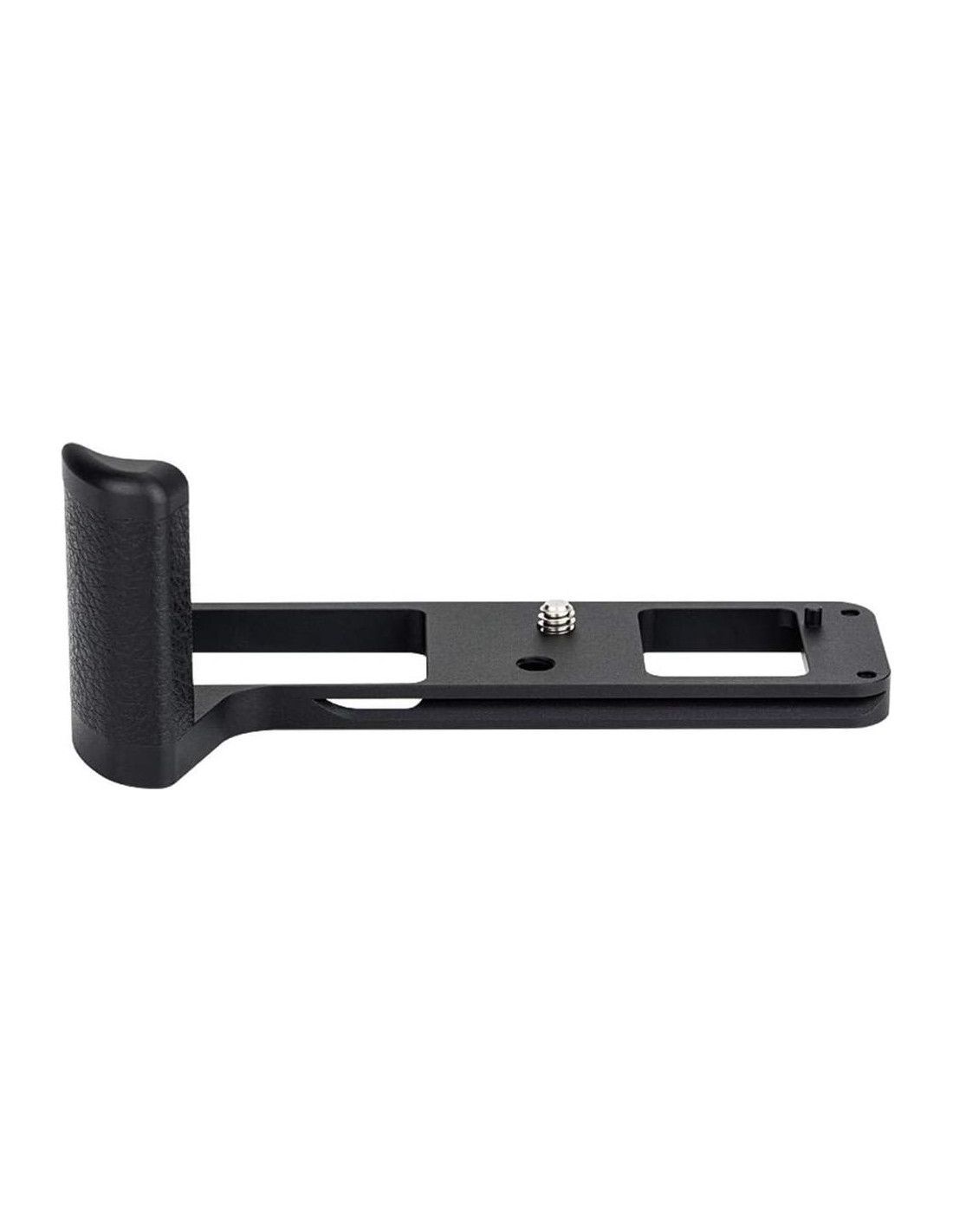 Diseñado para la cámara Fujifilm X-T4. Hecho de aleación de aluminio de alta calidad, que es resistente y duradero. Este tipo de construcción metálica también es una combinación perfecta con el cuerpo de la cámara. El agarre es antideslizante y puede proporcionarte una sensación de mano cómoda gracias al cuero de microfibra en su superficie. Después de acoplar el agarre a tu cámara, disfrutarás de un agarre más cómodo y seguro para tus disparos. La gran apertura en la parte inferior te permite retirar la batería sin quitar todo el agarre. También cuenta con un orificio para altavoz para acceder fácilmente al altavoz de tu cámara. La parte inferior del agarre adopta un diseño de placa de liberación rápida tipo Arca Swiss y puedes montar este agarre directamente en trípodes del sistema Arca Swiss. O puedes montarlo en otros trípodes o dispositivos a través del socket de trípode 1/4"-20. Además, este agarre te permite conectar la correa de mano JJC HS-ML1M (se vende por separado). Por favor nota: Solo el agarre, NO incluye cámara, batería, lente, trípode o correa de mano.