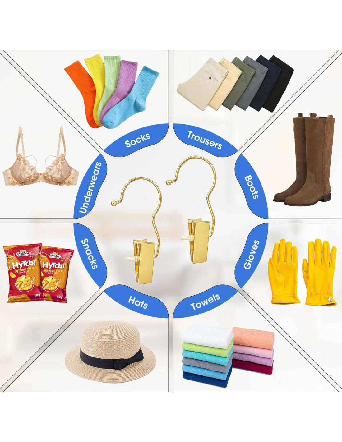 - El paquete incluye: Recibirás 30 clips para ganchos de botas, el tamaño de los ganchos de clip individuales es de 10.9 centímetros de largo, el tamaño de los ganchos dorados es de 3.6 centímetros de diámetro, y la longitud del pin de ropa es de 5 centímetros, pesa solo 18.1 gramos, los pequeños y ligeros ganchos dorados se adaptan a la mayoría de las varillas de armario en la vida diaria, ayudándote a aprovechar al máximo tu armario y otro espacio en la habitación para satisfacer tus necesidades diarias, estos ganchos de viaje son fáciles de llevar, un imprescindible para el hogar y los viajes