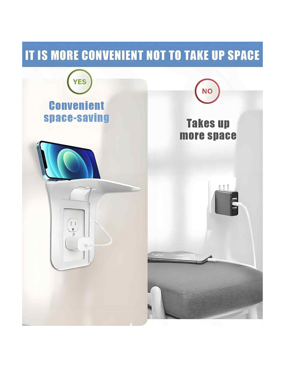 - Fácil de Instalar: Este estante de pared sin perforaciones se monta fácilmente en su placa de enchufe, se adapta a enchufes de dos clavijas estándar de EE. UU.