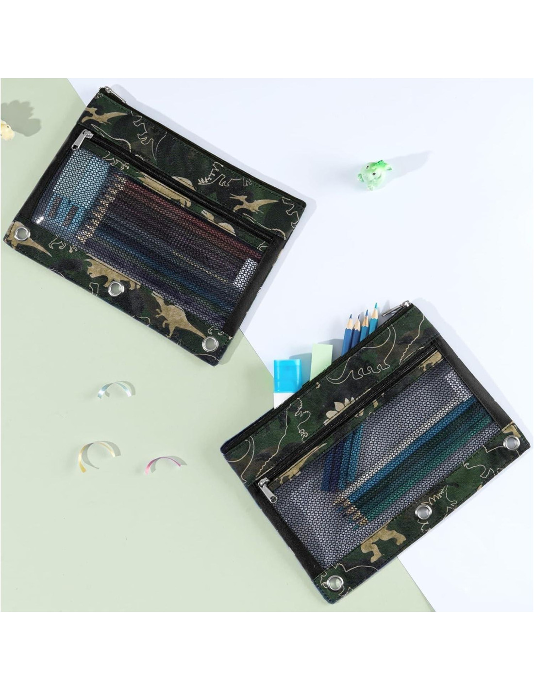 - FÁCIL CLASIFICACIÓN Y ALMACENAMIENTO: El estuche de lápices con cremallera de 3 anillas presenta un diseño de doble cremallera suave. El bolsillo frontal de malla puede contener pequeños artículos como borradores y clips, y el bolsillo más grande puede contener bolígrafos, reglas y otros accesorios