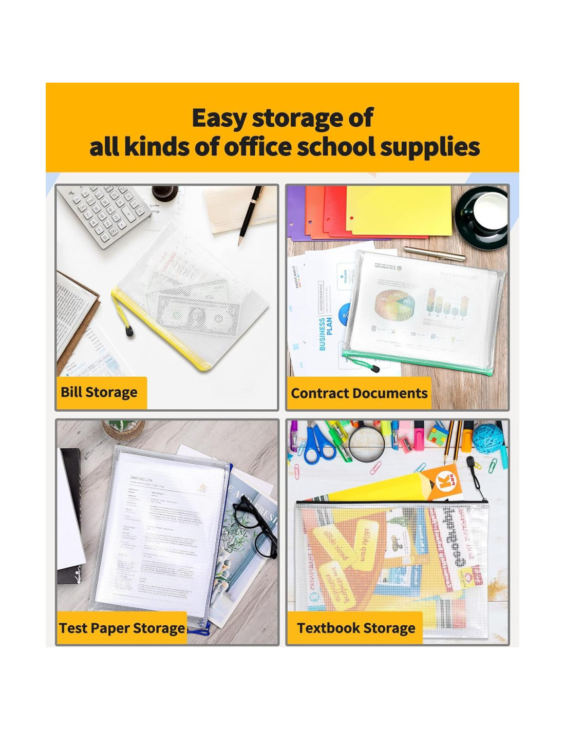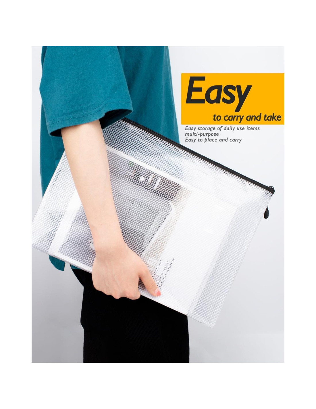 - USO GENERALIZADO PARA ALMACENAMIENTO: La bolsa con cremallera transparente está especialmente diseñada para las necesidades de almacenamiento de todos. PERFECTA para almacenar documentos importantes, dispositivos, libros más pequeños y otros.