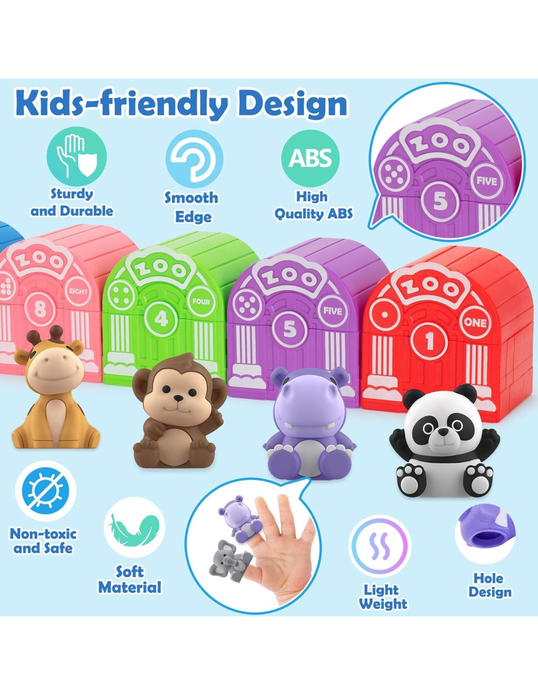 - Desarrollar Habilidades de Motricidad Fina: Cada pequeño animal puede ser utilizado como un juguete de marioneta de dedo, el agujero en la parte inferior es lo suficientemente grande para encajar los dedos de los niños, de modo que los animales se pueden poner y quitar fácilmente. Un juego imaginativo de dedos, ejercita la coordinación mano-ojo de los bebés. Los pequeños animales también pueden encajar perfectamente en los establos, permitiendo a los niños aprender 'poner' 'sacar' 'abrir' y 'cerrar' en el proceso, desarrollando sus habilidades de motricidad fina. Gran juguete para terapia del habla, ¡perfecto para terapia/enseñanza!