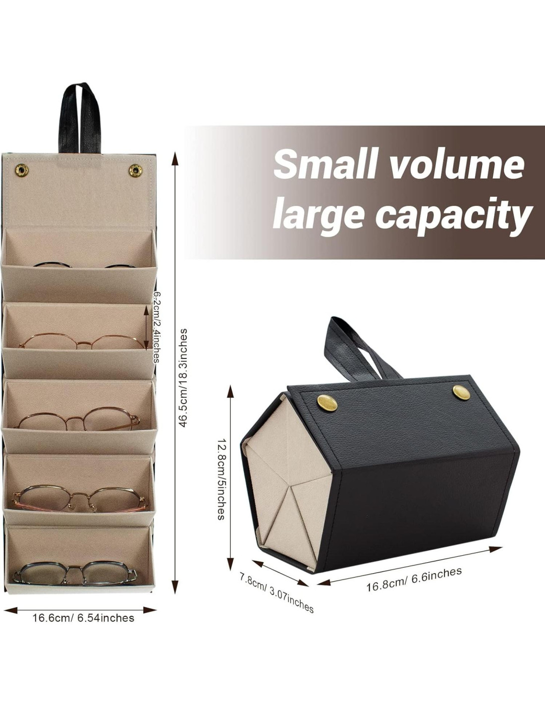 - Organizador de Gafas con 5 Ranuras y Paño para Gafas El soporte para gafas tiene 5 ranuras, por lo que puedes almacenar 5 pares de gafas a la vez, sin necesidad de guardarlas por separado. Puedes ponerlas directamente en tu equipaje cuando viajes, haciendo tu viaje más conveniente. Preparamos 2 paños de gamuza para satisfacer tus necesidades adicionales.