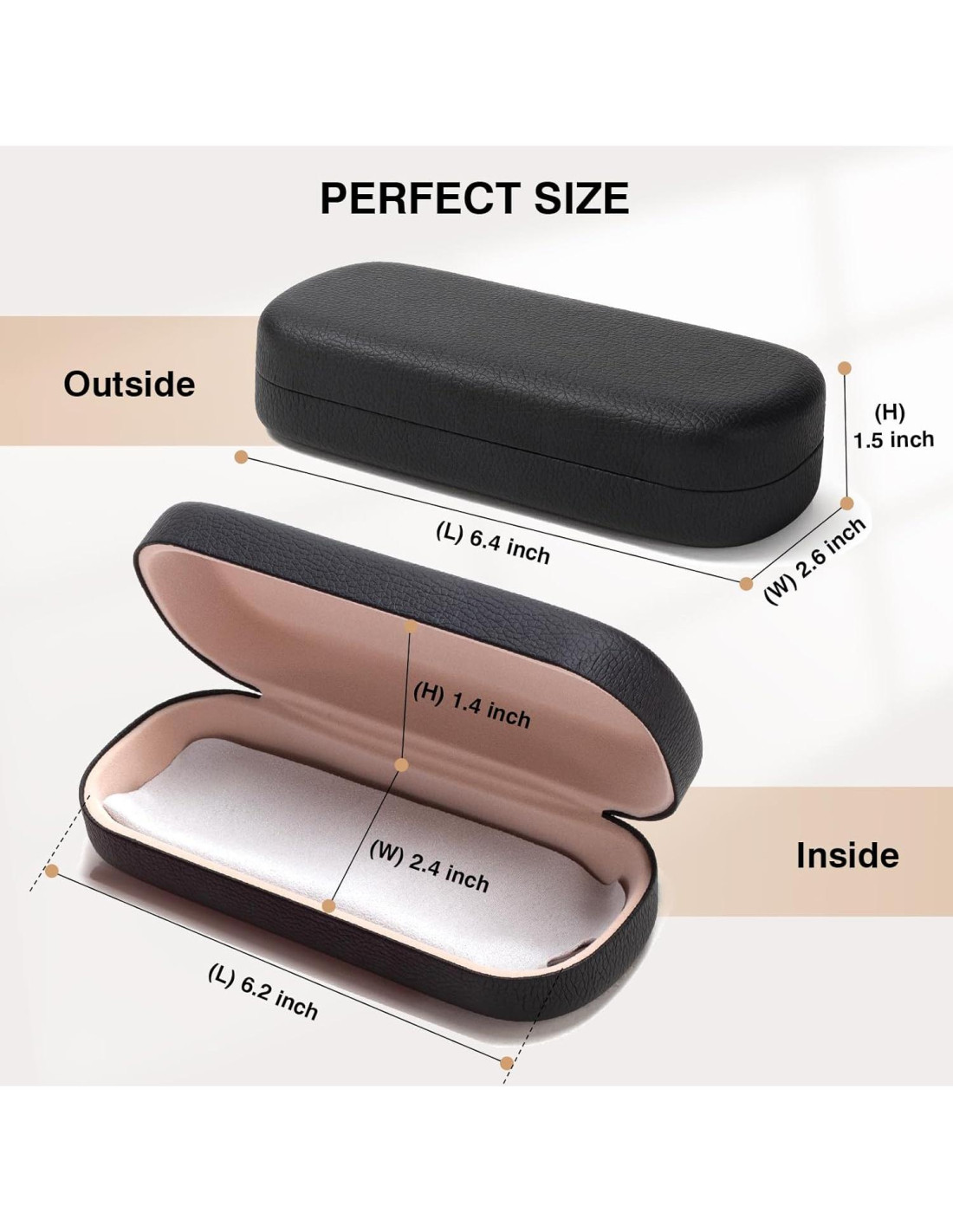 - Tamaño adecuado: El paquete incluye 1 estuche duro para gafas con paño de limpieza. Tamaño 6.2 x 2.4 x 1.4 pulgadas (15.75 x 6.1 x 3.56 cm) por dentro y 6.4 x 2.6 x 1.5 pulgadas (16.26 x 6.6 x 3.81 cm) por fuera. Este estuche para gafas es conveniente y ligero, lo que permite guardarlo en tu bolsillo, bolso y mochilas fácilmente y llevarlo contigo a donde vayas