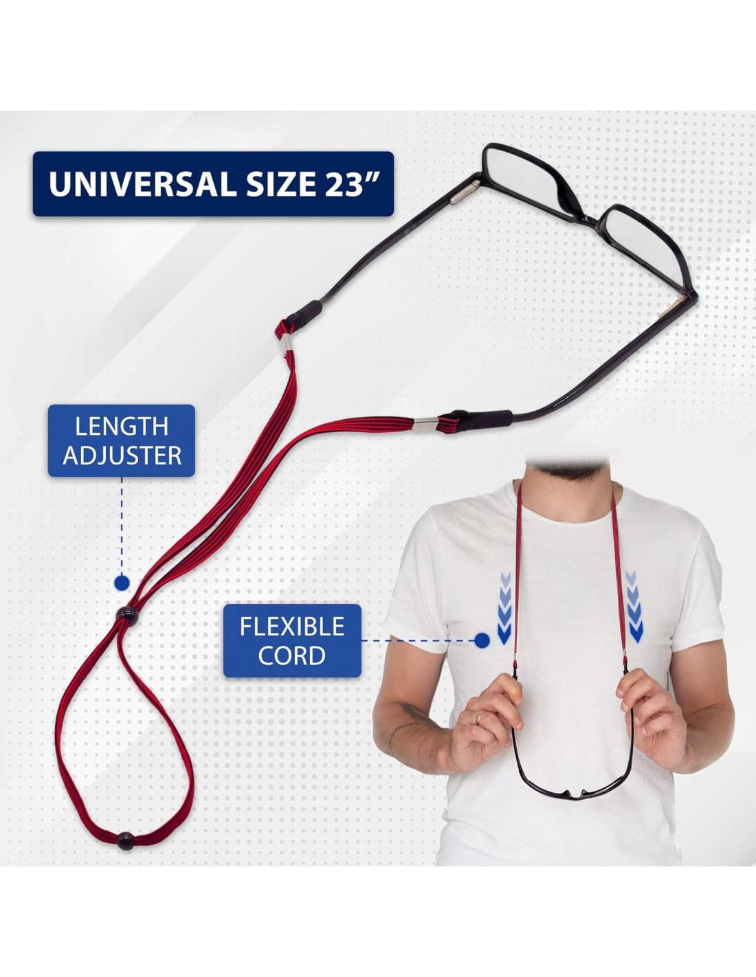 - Consejos Mejorados: Nuestra correa para gafas cuenta con un mecanismo de sujeción innovador con consejos antideslizantes patentados mejorados que evitan que se deslice. Gracias a este diseño, la correa para gafas se sujeta de forma segura sin distraer tus ojos ni colgar alrededor de tu mejilla