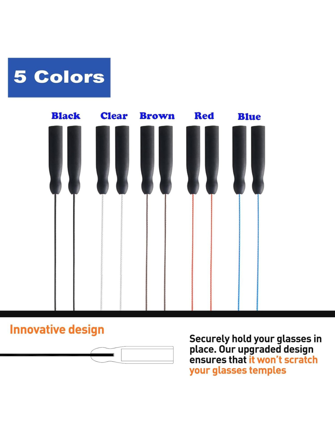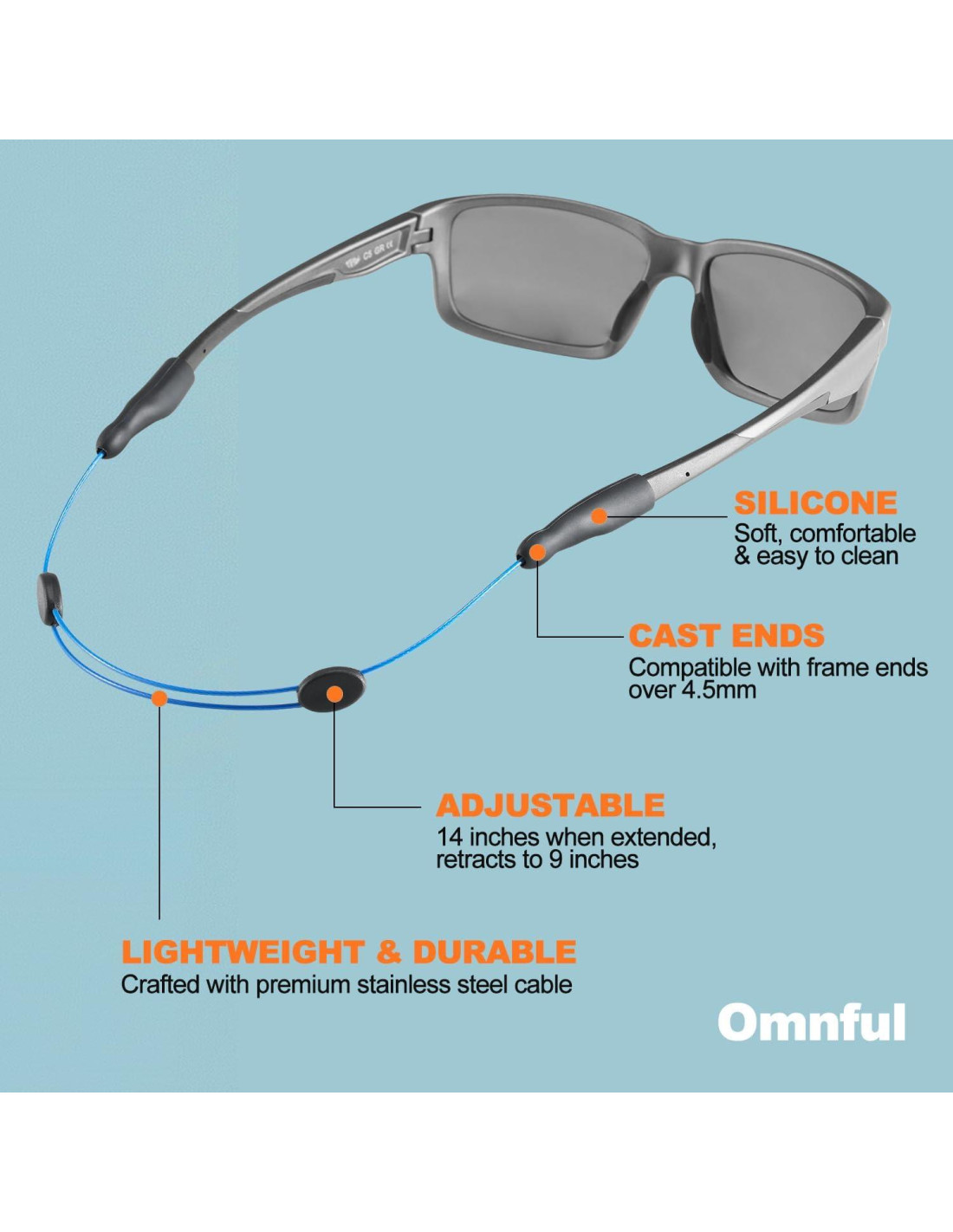 - Tamaño y Especificaciones: Nuestros sujetadores de gafas se adaptan a los extremos de los marcos más grandes de 4.5mm. Con diseño ajustable, la longitud máxima es de 14 pulgadas (35,56 cm), el tamaño mínimo es de 9 pulgadas (22,86 cm), adecuado para la mayoría de los tamaños de cabeza y cuello. También puedes consultar la Imagen 3 para instrucciones sobre las correas para gafas
