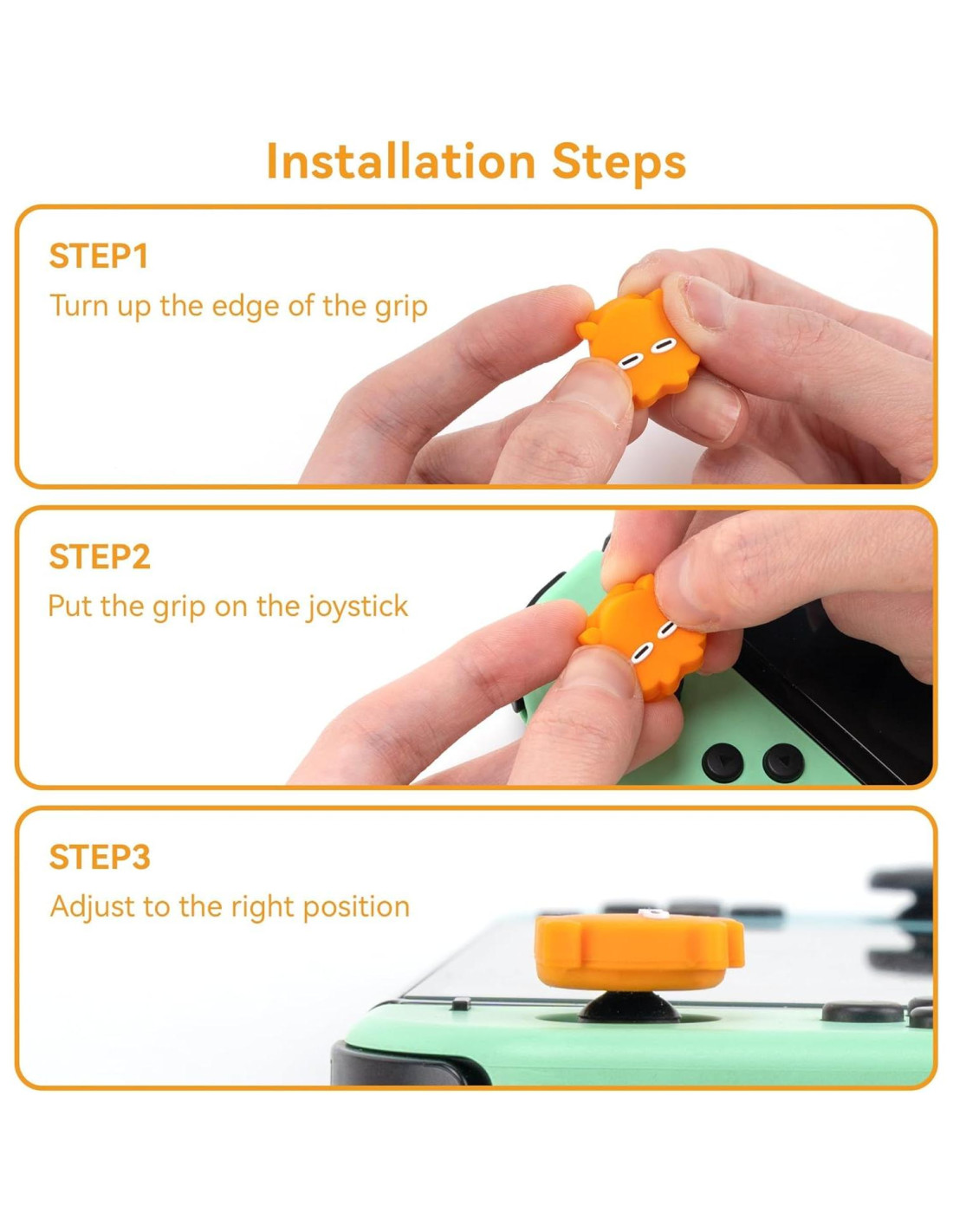 - [Ensamblaje de 3 pasos] El ensamblaje solo toma 3 pasos, que son simples y fáciles de operar. Levanta el borde del agarre. Coloca el agarre en el joystick y baja el borde del agarre. Ajusta el agarre de pulgar a la posición correcta. Por favor verifica si las tapas envuelven completamente el joystick para evitar que se salgan mientras juegas.