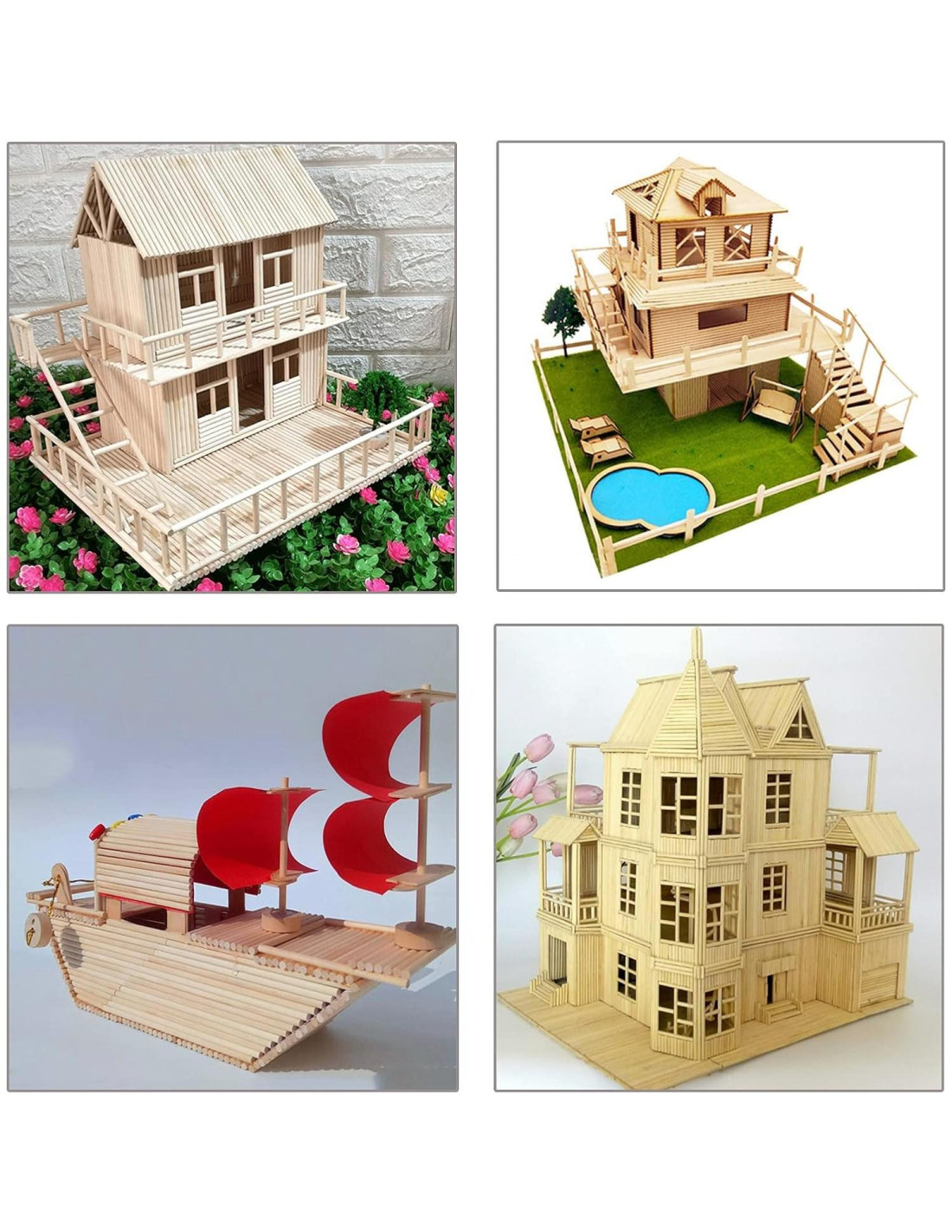 - 3. Suministros de DIY: Estas varillas de bambú se pueden cortar fácilmente para adaptarse y colorear para muchas manualidades como decoración del hogar, accesorios para cabinas fotográficas, proyectos de ciencia escolar, construcción de estructuras como puentes, casas de muñecas, cometas, secciones que soportan peso en modelos de aviones o barcos, manualidades, varillas para pasteles, etc.