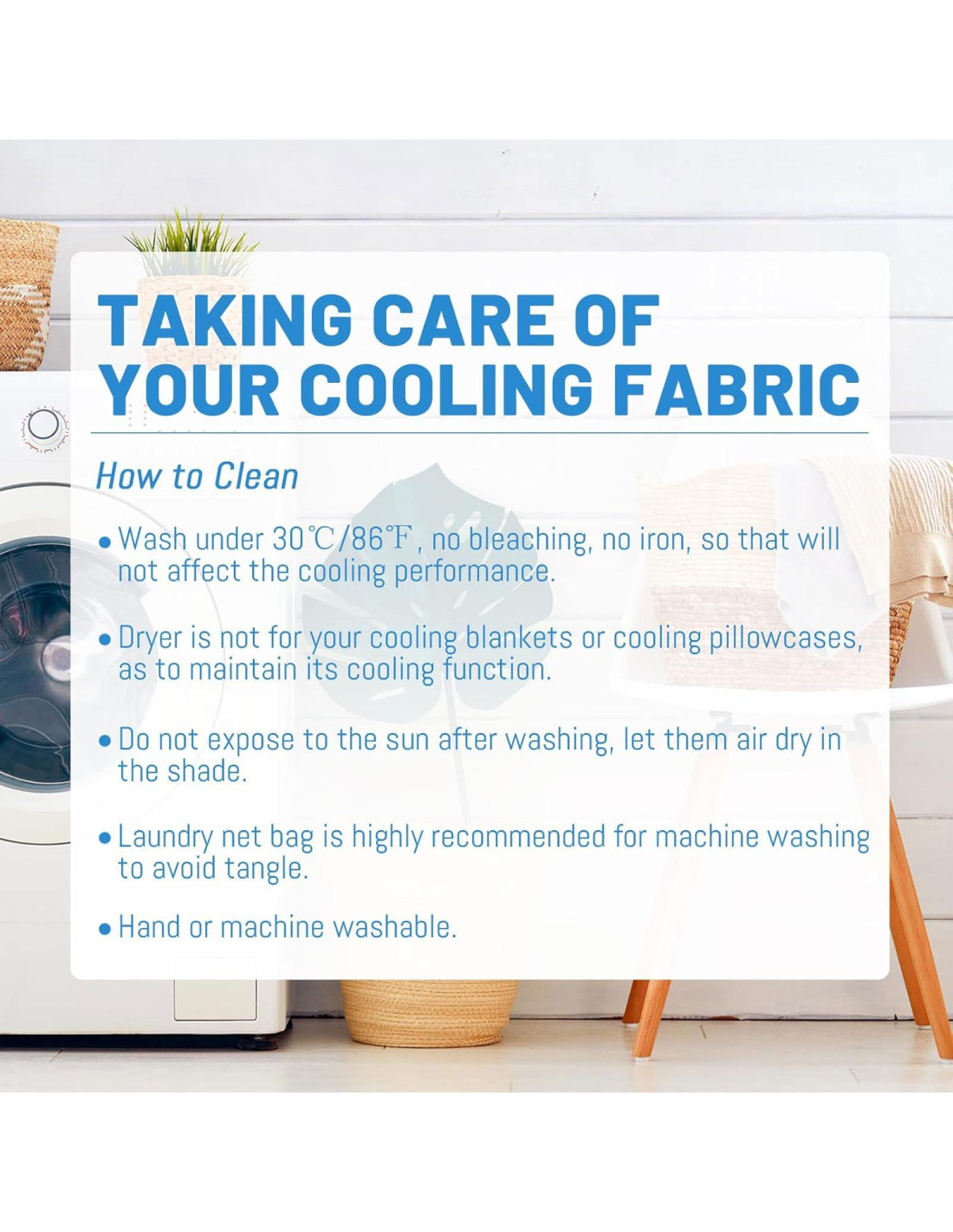 - Tipo de tela: Ambos lados hechos de fibra de enfriamiento. Perfecto para dormilones calientes y sudores nocturnos en verano. Se recomienda encarecidamente usar la manta de enfriamiento con aire acondicionado o ventilador para un mejor efecto de enfriamiento.