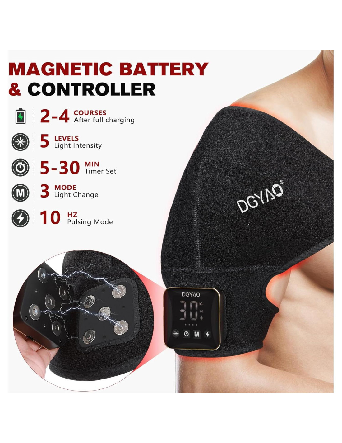 - [Tres Modos de Iluminación] Luz roja de 660NM y luz infrarroja de 850NM, solo luz roja y solo luz infrarroja. La luz roja (660nm) alcanza capas profundas de la piel, donde estimula la reparación celular y aumenta la circulación. La luz infrarroja cercana (850nm) penetra profundamente en las articulaciones y músculos para alcanzar profundamente tu hombro. Ayuda a acelerar el alivio del dolor y la recuperación, ideal para lesiones deportivas, dolor en las articulaciones y relajación muscular.