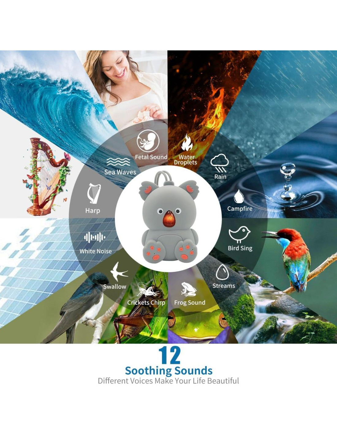 - Tu Música, la Paz del Bebé - Modo Bluetooth Inteligente-- Conéctate sin problemas a tu teléfono para reproducir cuentos para dormir, canciones de adoración o listas de reproducción personalizadas. Reproduce tu música relajante favorita en cualquier lugar y en cualquier momento, creando asociaciones únicas de sueño que tu familia atesorará.