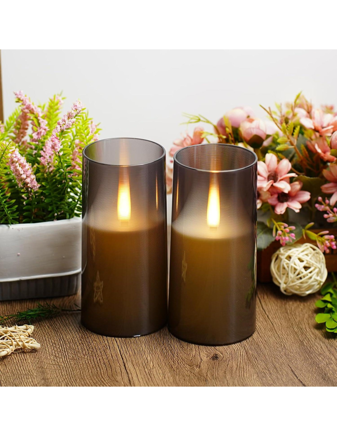 - [El paquete contiene] El set incluye dos velas de pilar sin llama (D 7.62 cm x H 15.24 cm), un control remoto y una hoja de instrucciones, lo que facilita la configuración y el disfrute de sus nuevas velas. Cada vela a pilas funciona con 2 baterías AA (no incluidas), ofreciendo una solución de iluminación sin cables y sin complicaciones.