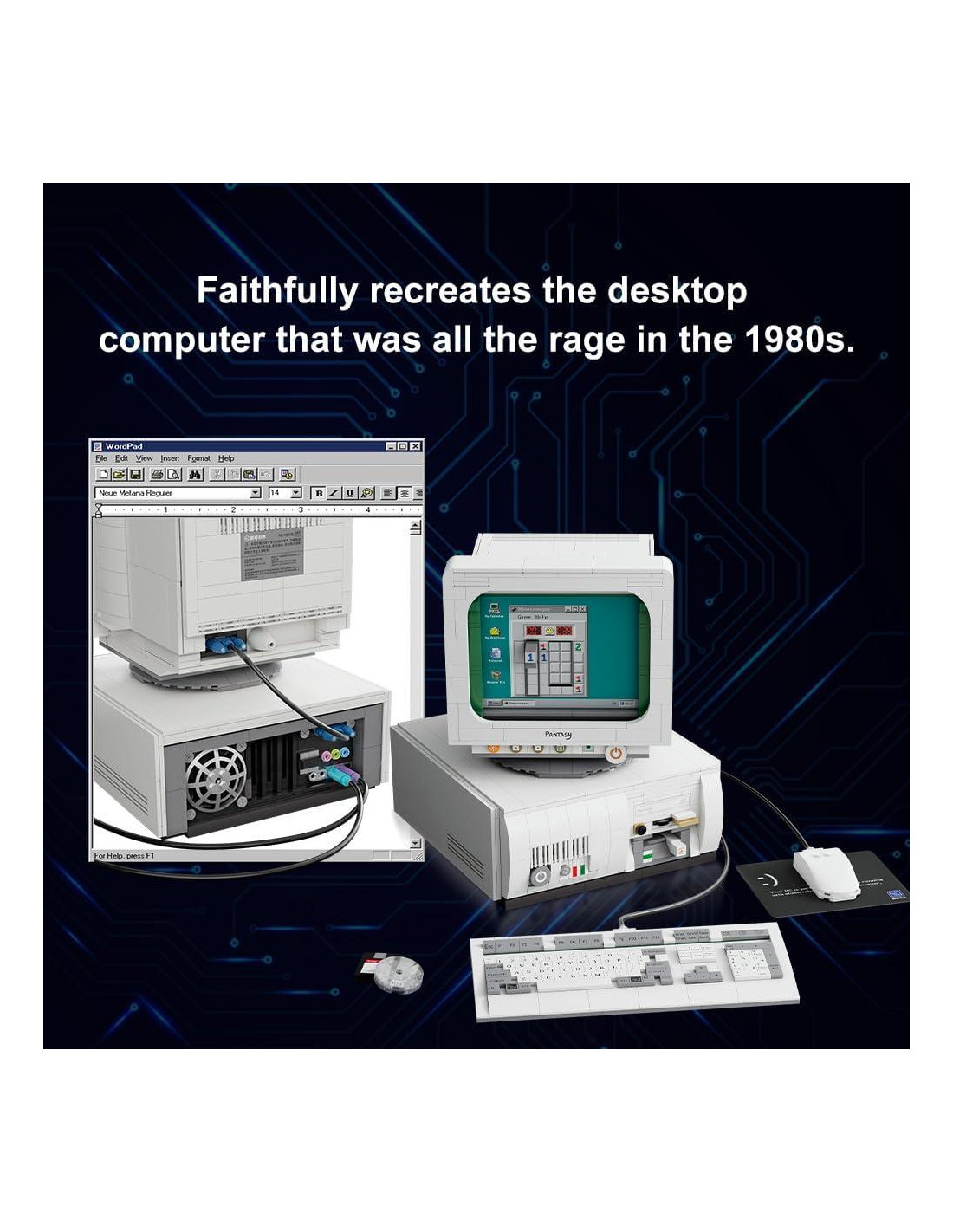 - [Kit de Bloques de Construcción de Computadora Retro] Transpórtate a la era de la computación de los años 80 con nuestro meticulosamente elaborado set de construcción de computadora vintage. Un homenaje al icónico IBM PC330, este kit de construcción comprende componentes clásicos como un monitor, CPU, ratón, teclado, discos flexibles y CDs.