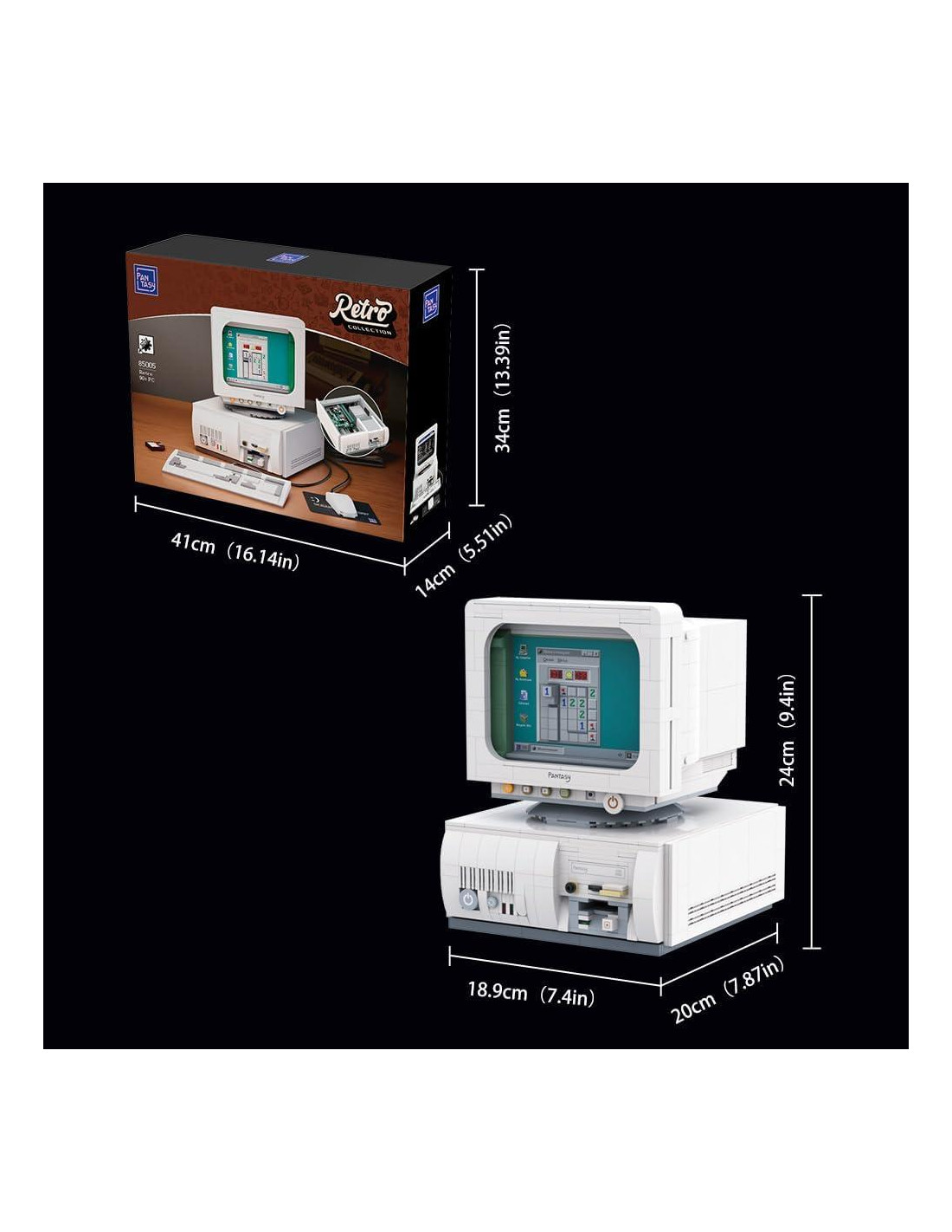 - [Decora con Nostalgia] Una vez ensamblado, las dimensiones de este set de bloques de construcción de computadora retro (20.1 cm x 19.1 cm x 24.1 cm) lo convierten no solo en una obra maestra nostálgica, sino también en una adición elegante a la decoración de tu hogar u oficina. Este kit de construcción es perfecto para fanáticos de todas las edades. Ya seas un entusiasta retro o alguien que busca un cautivador set de bloques de construcción DIY, este kit está diseñado para satisfacer a todos.