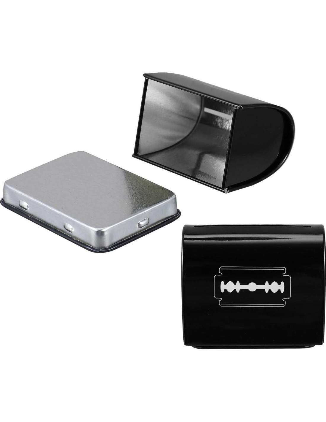 Descripción Hecho de material de hierro premium, nuestro contenedor es resistente y ligero. Diseñado para la eliminación segura y conveniente de cuchillas de afeitar usadas. Tiene un fondo removible para vaciar el almacenamiento de cuchillas, se puede reutilizar múltiples veces. Características - Color: Negro. - Material: Hierro. - Tamaño: 6.50X4.50X6.00 cm (2.55X1.77X2.36 pulgadas). - Contenedor de almacenamiento para cuchillas de afeitar usadas, en lugar de cuchillas expuestas en todas partes, más seguro y conveniente. - El dispensador de cuchillas ahorra espacio y es ligero. - Hecho de material de hierro premium, es duradero, resistente al desgaste y práctico. - Adecuado para desechar objetos afilados, incluidos aquellos contaminados con productos medicinales y sus residuos. - Diseño universal para todo tipo de cuchillas de afeitar de doble filo y cuchillas de grado de barbería. Paquete Incluyendo 2 x cajas